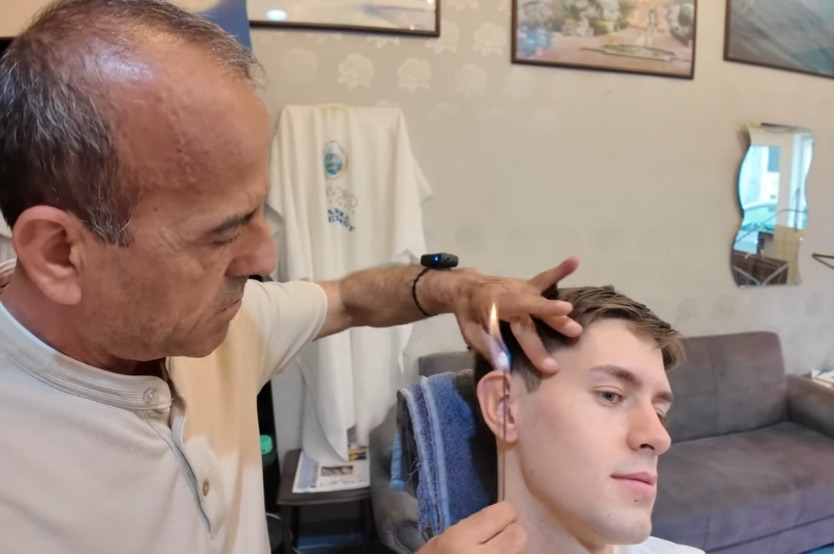 얼굴에 남은 잔털을 태움.