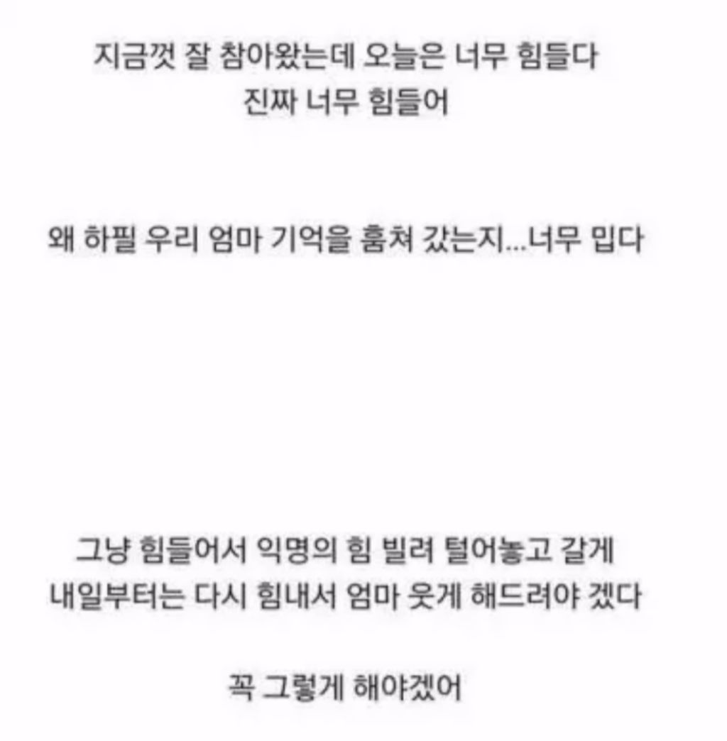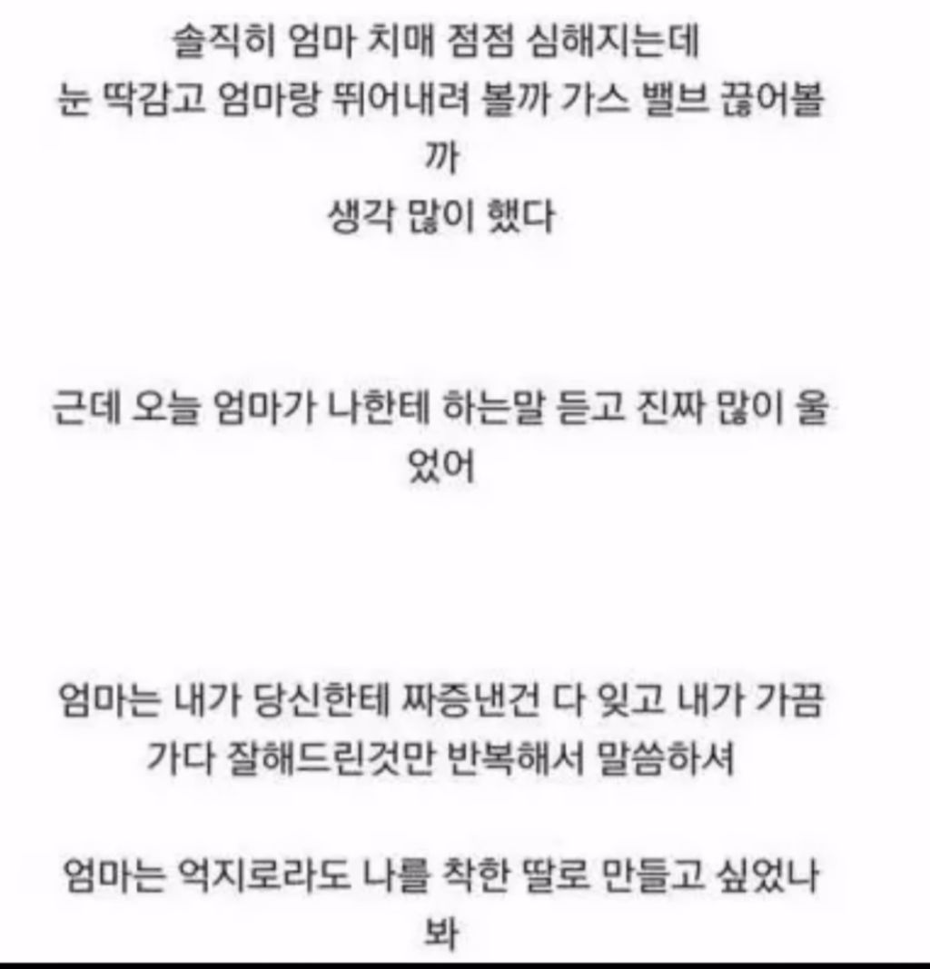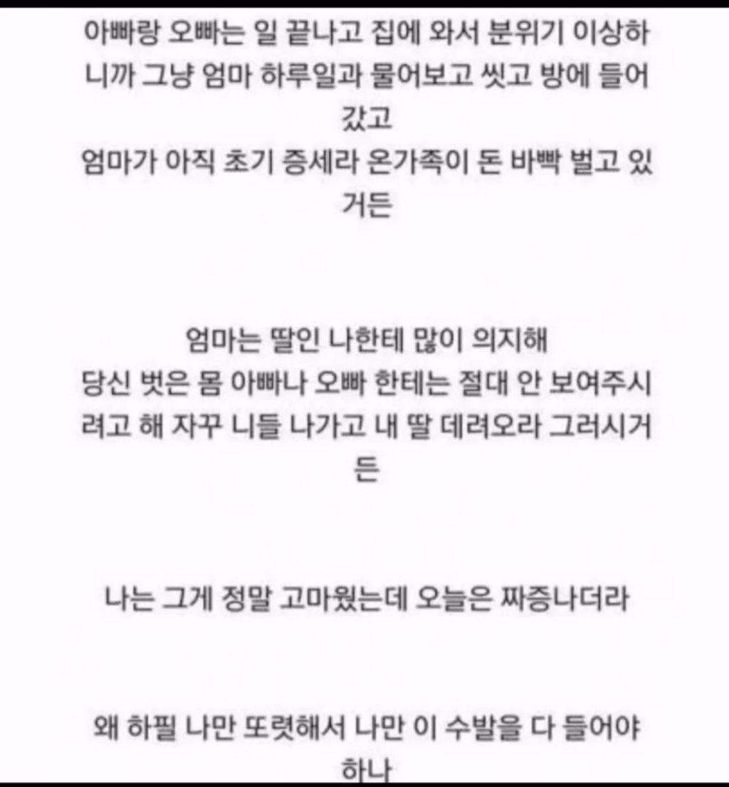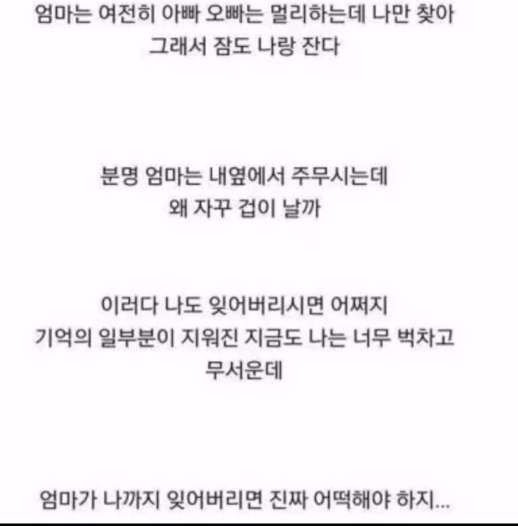 작성시간 25.09.08 우리 할머닌 날 젤로 미워하셨는데 나만 기억하심. 진짜로 없어져야 할 아픔중에 치매.