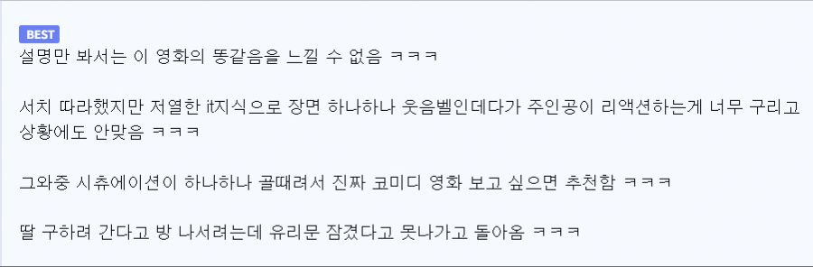 이종격투기 영화를 못만드는것도 매우 어렵다 작성시간25.09.24|조회수15,049 목록 댓글 4 글자크기 작게가 글자크기 크게가 현재는 로튼 토마토 3% 다음검색 현재 게시글 추가 기능 열기 북마크 공유하기 신고 센터로 신고 댓글 4 댓글 리스트 작성시간 25.09.24 이런 애도 트리플 엑스 였음 ㅋ 작성시간 25.09.24 아이스 큐브 하면 블랙 코리아죠 작성시간 25.09.24 무서운 영화 같은 패러디 영화인가요 ㅎㅎ 작성시간 25.09.25 큐브형 마이늙었네 ㅜㅜ 카페 방문해 더 많은 댓글 만나기!