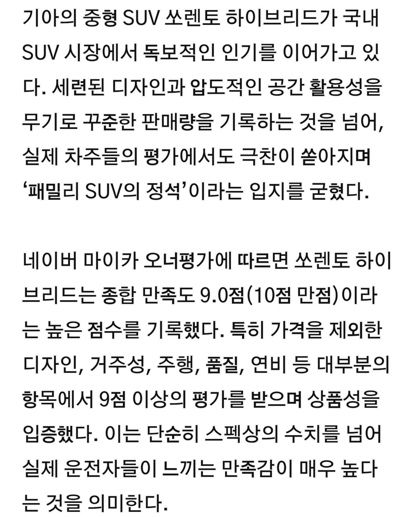 작성시간 25.12.26 산타페가 신형이라 공간도 넓고 미세하게 주행성능도 좋을거같은대 쏘렌토한테 안되네 ㄷㄷ 대단합니다..