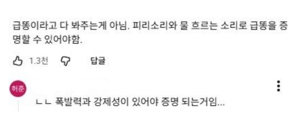 작성자후凸ㅡ.ㅡ凸훗 작성시간 26.01.02 선생님 인간적으로 변기에 물은 한번 뿌려주시고 가세요 저희는 갑니다