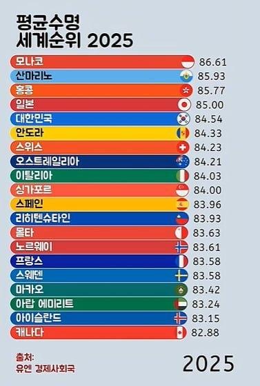 이종격투기 평균수명 세계순위(2025) 작성시간26.01.17|조회수11,105 목록 댓글 5 글자크기 작게가 글자크기 크게가 다음검색 현재 게시글 추가 기능 열기 북마크 공유하기 신고 센터로 신고 댓글 5 댓글 리스트 작성시간 26.01.17 생각보다 높네 작성시간 26.01.17 일본은 더 낮을거임.사망해도 신고를 안한다고 작성시간 26.01.17 이건 어릴 때 죽는것도 다 포함한거 맞나요?? 작성시간 26.01.17 모나코 여자분들 정말 이쁨 작성시간 26.01.17 건강수명은 70초반인가 그럴거임 카페 방문해 더 많은 댓글 만나기!