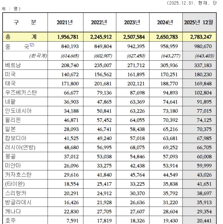 작성시간 26.01.22 베트남 훨씬 더 될듯
