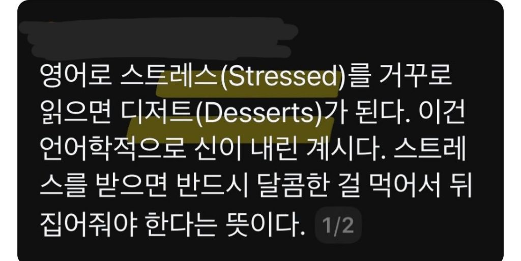 이종격투기 스트레스 받았을때 디저트를 먹어야 하는 이유 작성시간26.01.24|조회수12,002 목록 댓글 3 글자크기 작게가 글자크기 크게가 다음검색 현재 게시글 추가 기능 열기 북마크 공유하기 신고 센터로 신고 댓글 3 댓글 리스트 작성시간 26.01.24 오오.. 싱기싱기.. 작성시간 26.01.24 헐 그러네 작성시간 26.01.24 거꾸로하면 sserts 인데???? 카페 방문해 더 많은 댓글 만나기!
