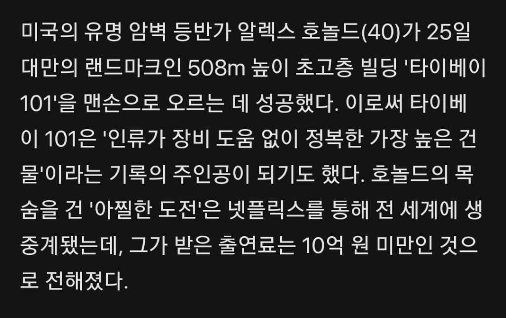 답댓글 작성시간 26.01.27 저분 맨손으로 암벽다는 다큐도 있어요. 수개월간 준비하고 올라가는 과정보면서 굉장히 철학적인 느낌을 받았네요.