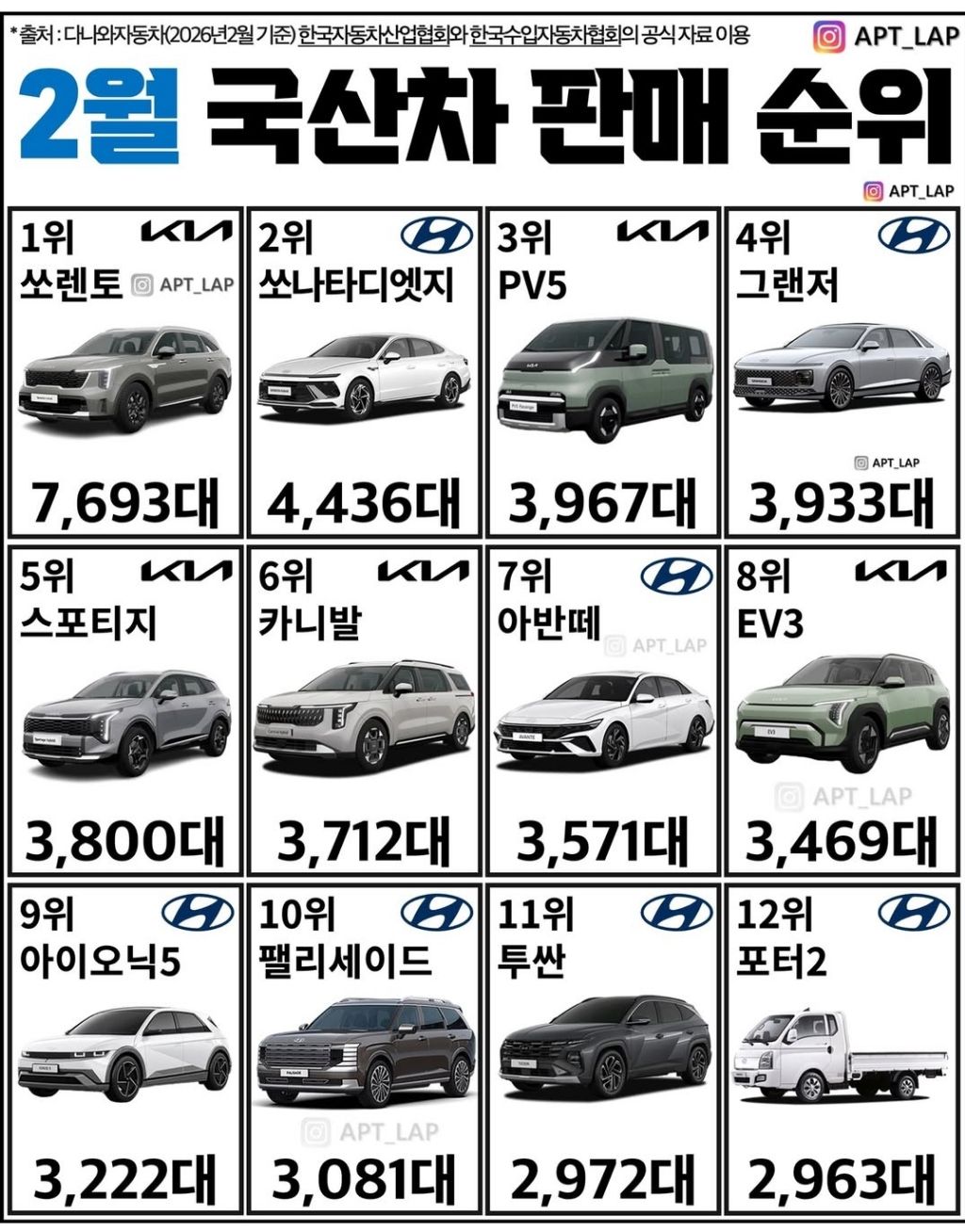 작성시간 26.03.05 쏘렌토 진짜 대단하네요... ㅋㅋㅋ