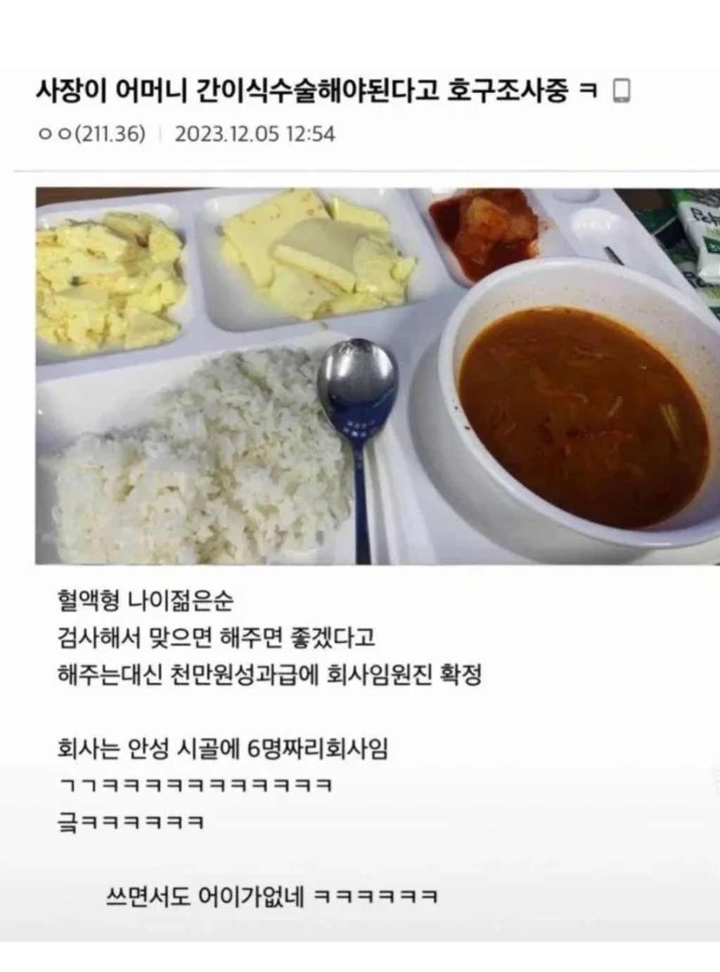 작성자결빈서율이아빠 작성시간 26.03.14 간이식? 회사에 아버지께 간이식한 여직원있음. 간이식 후 몸이 너무 안좋아졌다고 함. 가족 중 맞는 사람이 자기밖에 없었고, 대안도 없고, 이식수술하는거 무섭다고 아버지 돌아가시게 하는것도 못할짓이고. 암튼 결혼 전에 간이식 함. 그래도 후회없다고함. 아버지 건강히 일하시는게 너무 좋다고 함. 천만원? ㅅㅂ 무슨 개소리를... 5억은 줘야지. 사람 목숨값이 장난이냐.