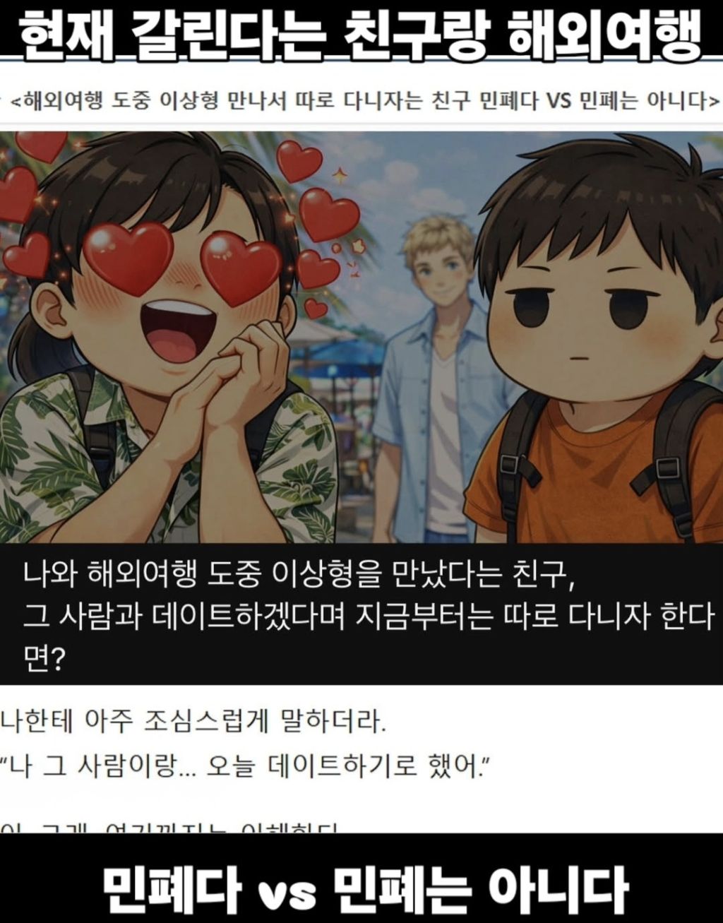 작성자평도 작성시간 26.03.24 야 남자야 친구야? 선택해. 해외까지 와서 이렇게 쓰리썸쩍 넘어간다구?