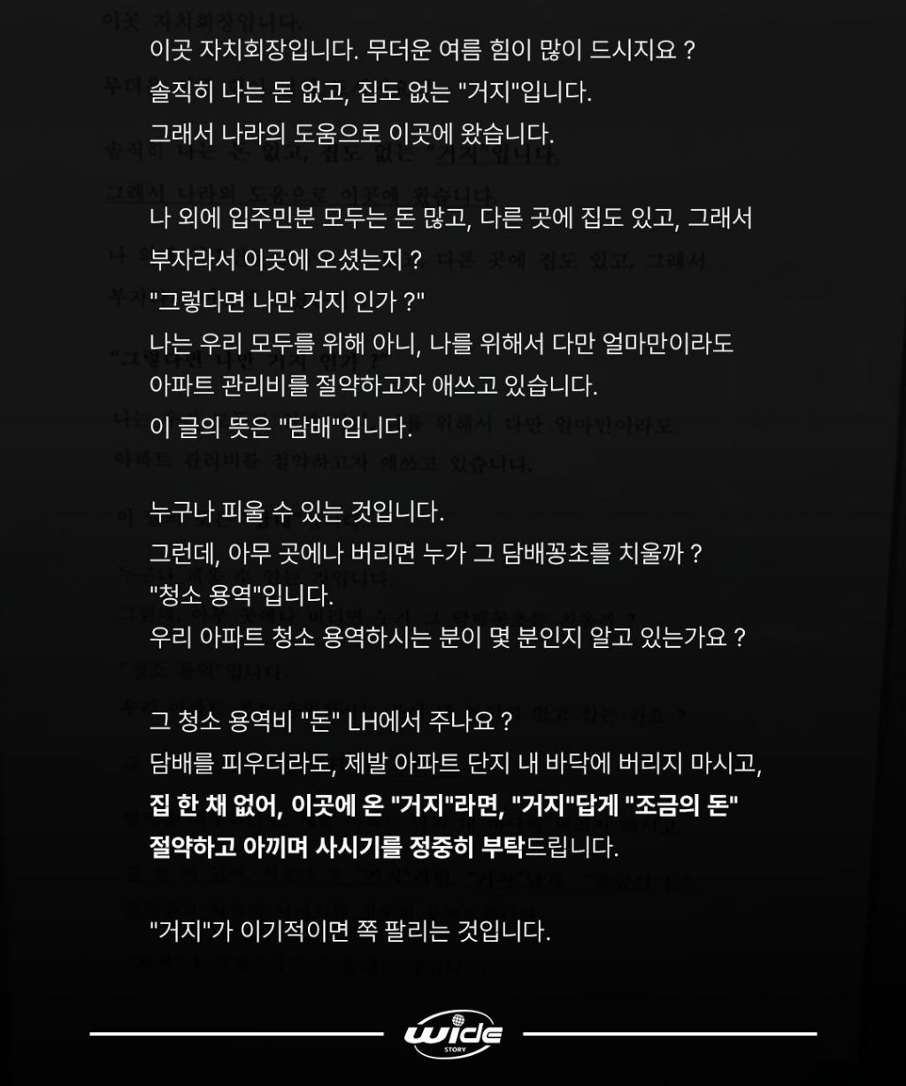 작성자백곰조련사 작성시간 26.04.02 근데 저글쓴분이 자치회장이라고하는데 저런 하소연을 한두번한게 아니겠지요. 하다하다 안되니까 자기비하까지 하면서 글을 쓰신거같네요. 물론 다그렇지 않습니다만 특히 임대 거주하시는 노인분들이 혜택만 원하시고 안하무인인 분들이 정말 많습니다. 가보면 아이놀이터 벤치에 담배피고있고, 고추말리고 그런곳 많더라고요.