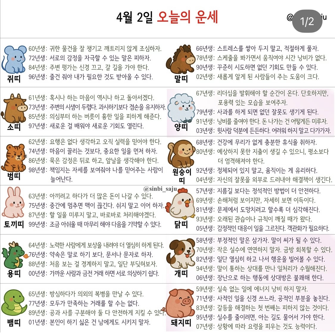 오늘의 운세 작성자Binyoppa|작성시간26.04.02|조회수1,439 목록 댓글 1 글자크기 작게가 글자크기 크게가 다음검색 현재 게시글 추가 기능 열기 북마크 공유하기 신고 센터로 신고 댓글 댓글 1 댓글쓰기 답글쓰기 댓글 리스트 작성자WOWA | 작성시간 26.04.02 감사합니다. 댓글 전체보기