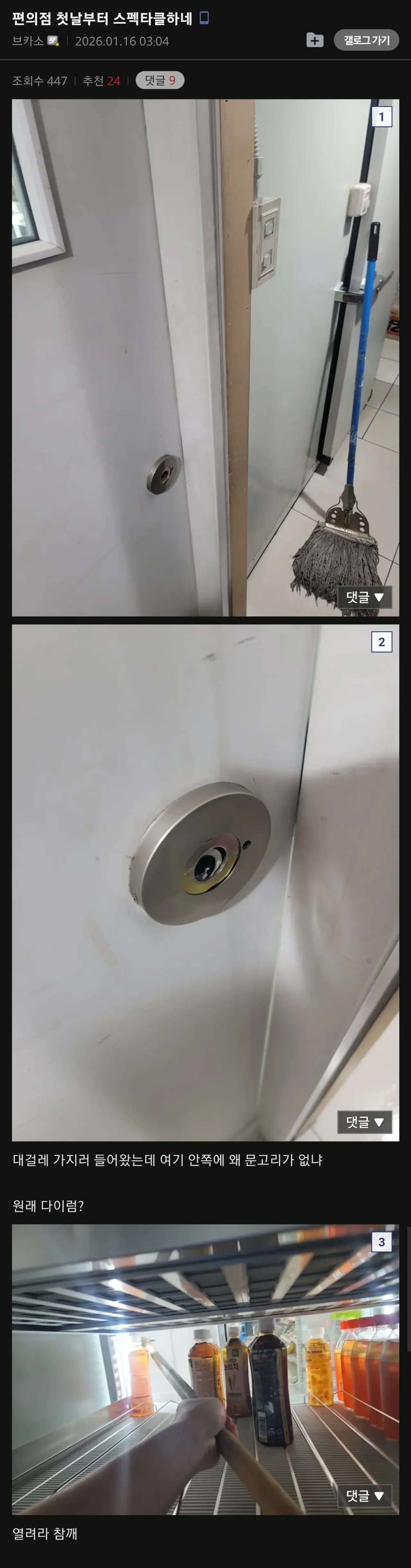 편의점 알바 첫날에 생긴 일. 작성자자각몽6|작성시간26.04.02|조회수6,936 목록 댓글 4 글자크기 작게가 글자크기 크게가 다음검색 현재 게시글 추가 기능 열기 북마크 공유하기 신고 센터로 신고 댓글 댓글 4 댓글쓰기 답글쓰기 댓글 리스트 작성자스 노 쿄 이 치 | 작성시간 26.04.02 주온 답댓글 작성자11년 정회원 | 작성시간 26.04.02 링? 작성자sang ju | 작성시간 26.04.02 이제 알았지 ㅋㅋ 작성자살로가는칼슘두유 | 작성시간 26.04.02 야이씨 ㅋㅋㅋㅋㅋㅋㅋ 댓글 전체보기
