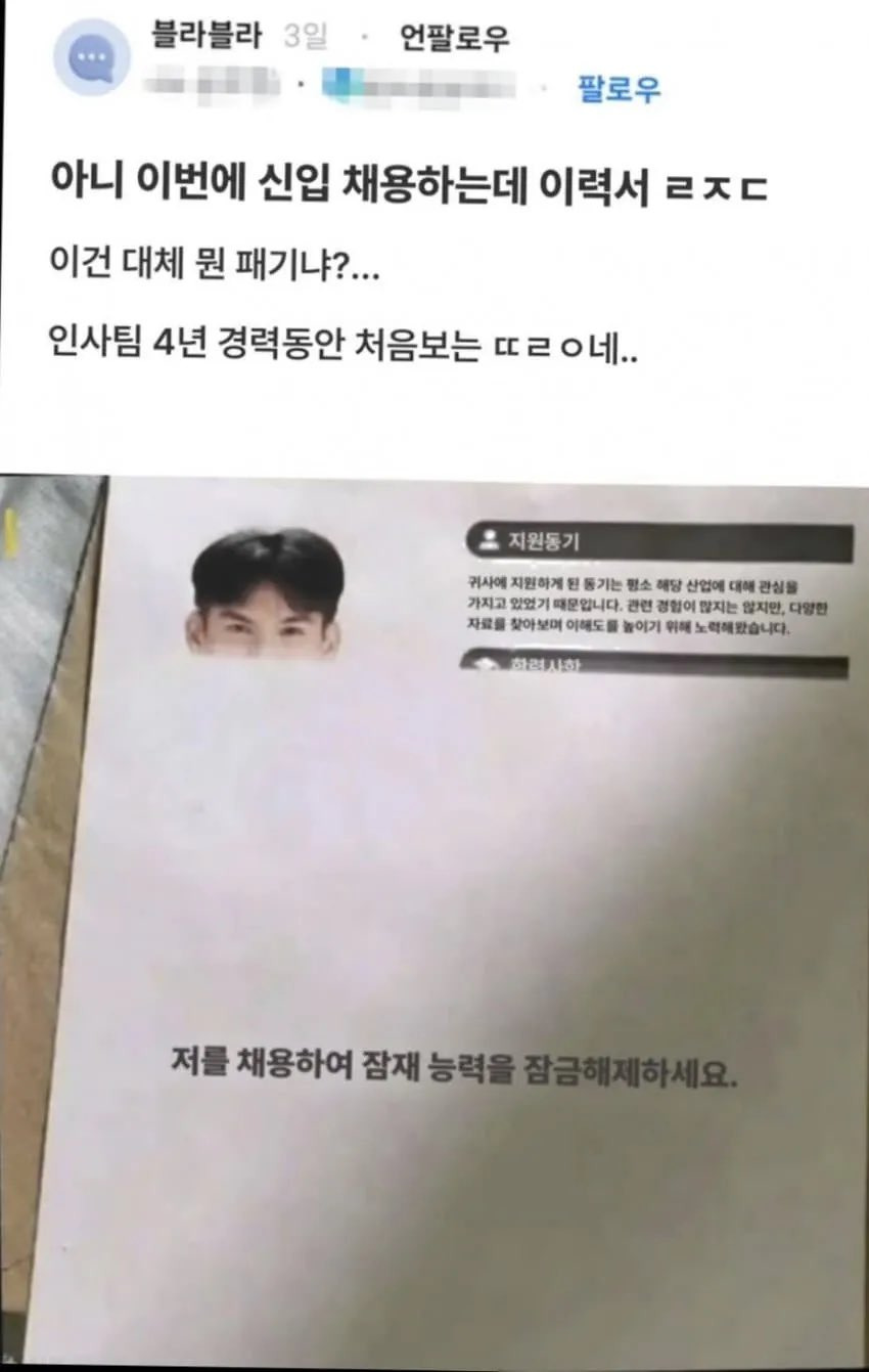 작성자인생 한방일까 두방일까 작성시간 26.04.07 장동민이 저거 비스무레하게 사진도 웃긴표정으로 찍어서 올렸는데 서류전형에서 탈락했다고. 별로 안좋은방법이라고 십몇년전에 이미 방송나와서 이야기를 했건만~
