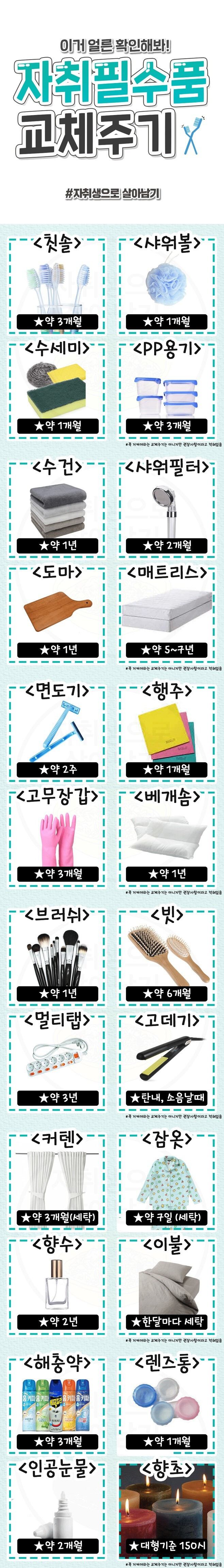 자취필수품 교체주기 작성자흔한호기심|작성시간26.04.14|조회수5,894 목록 댓글 7 글자크기 작게가 글자크기 크게가 다음검색 현재 게시글 추가 기능 열기 북마크 공유하기 신고 센터로 신고 댓글 댓글 7 댓글쓰기 답글쓰기 댓글 리스트 작성자울집 똥개 만두. | 작성시간 26.04.14 면도기는2~3달 쓰는디.. 작성자숟가락펀치 | 작성시간 26.04.14 저기서 3배정도는 더 쓰는듯.. 작성자가가가가?가가가가? | 작성시간 26.04.14 샤워기부스를 2개월마다? 작성자전설의뽀빠이 | 작성시간 26.04.14 미친....글로만 자취를 배운놈이 작성한 글인듯 작성자전설의 주먹 | 작성시간 26.04.14 너무 깨끗하면 면연력 떨어진다고 하던데요? ㅎㅎ 댓글 전체보기