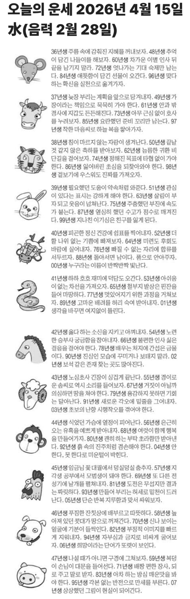 오늘의 운세 작성자fate2222|작성시간26.04.15|조회수1,835 목록 댓글 2 글자크기 작게가 글자크기 크게가 다음검색 현재 게시글 추가 기능 열기 북마크 공유하기 신고 센터로 신고 댓글 댓글 2 댓글쓰기 답글쓰기 댓글 리스트 작성자복사기 임대업자 | 작성시간 26.04.15 짜릿한 결과 기대해 봅니다 작성자평도 | 작성시간 26.04.15 어휴 깜놀..앞줄 “전”을 못보고 ‘또 다른 성기에 날개를 펼쳐내자‘로 읽었네요ㅠ 댓글 전체보기