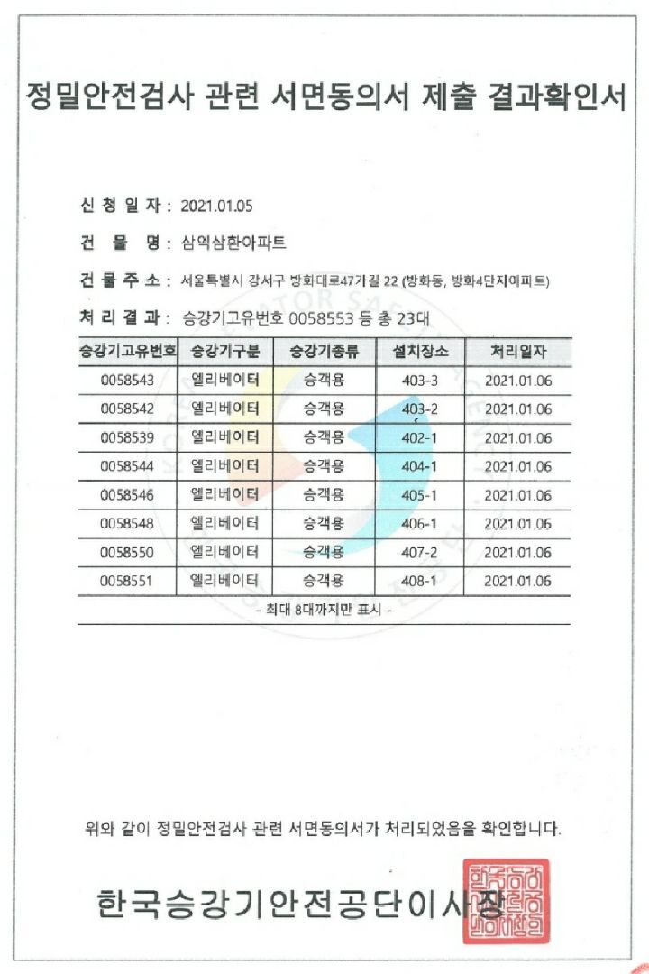 승강기부품 설치유예 동의서 제출 결과 작성자ssbapt|작성시간21.01.06|조회수933 목록 댓글 0 글자크기 작게가 글자크기 크게가 승강기 정밀안전검사 관련 설치유예 서면동의는 총680세대 중 521세대의 동의(76.6%)에 의하여 관련기관에아래와 같이 제출되었다고 합니다. 다음검색 현재 게시글 추가 기능 열기 북마크 공유하기 신고 센터로 신고 댓글 댓글 0 댓글쓰기 답글쓰기 댓글 리스트