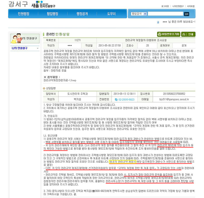 이 내용이 개정관련 업무 추진에 참고가 되었으면 하는 입주민의 마음임을 첨언 합니다.