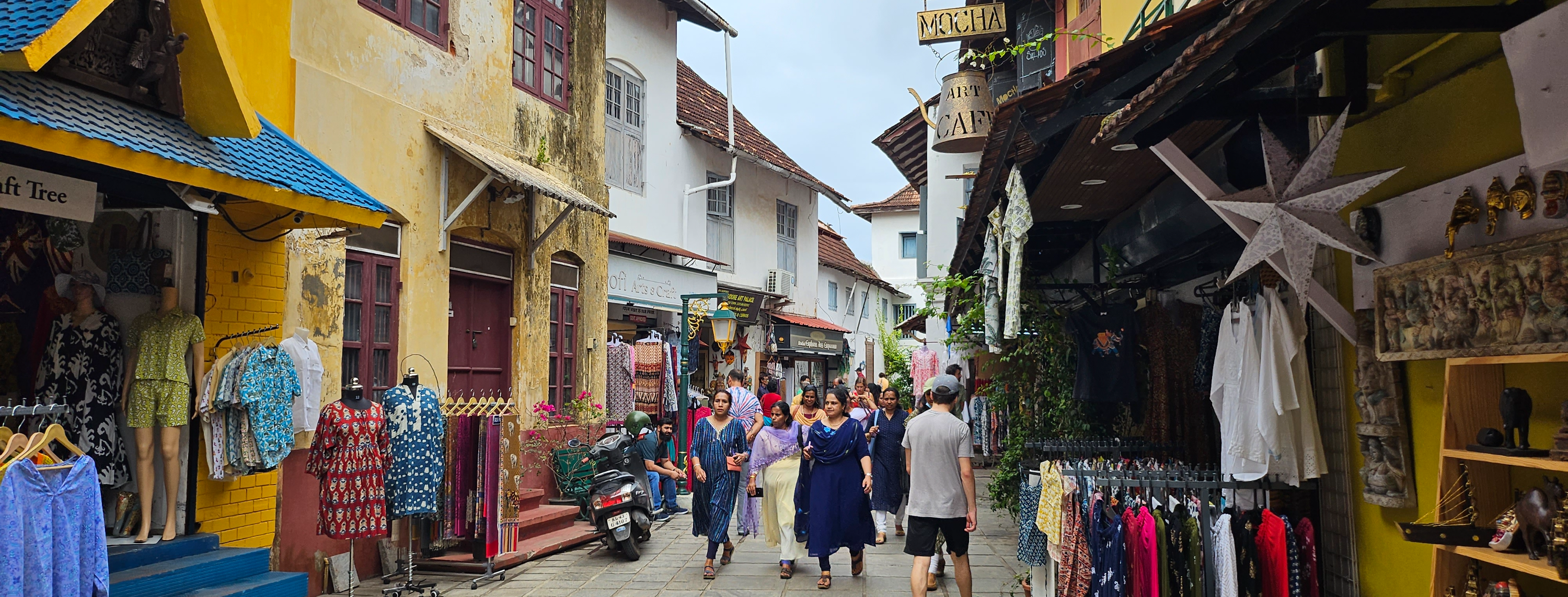 노란색 칠을 한 오래된 포르투갈 풍의 건물들이 늘어선 곳에 가게마다 고풍스럽다. 마치 낡은 유럽의 작은 마을을 온 듯 했다. 인도의 다른 곳에서는 느낄 수 없는 독특한 분위기다.
