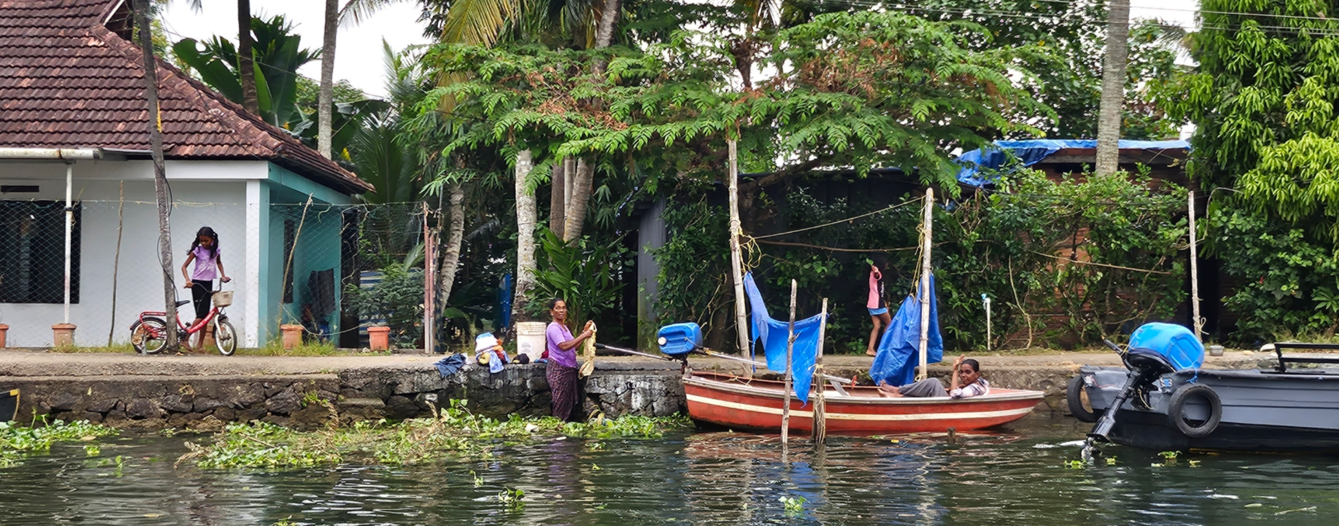 수로에는 부레옥잠이 피었고 수로 주변의 주택에서 사는 사람들의 모습도 볼 수 있었다