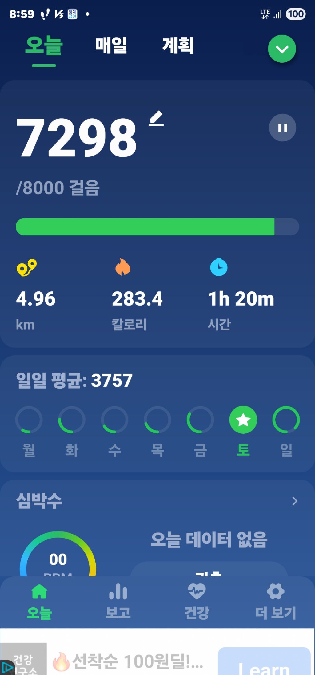 오늘 은 (일) 7298보 걷고