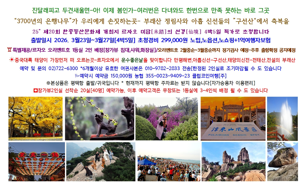 [2차-6차 예약중]제1차 마감-매항차 선착순 40명 마감-2,3,4,5,6차 예약중 진행합니다 작성자카페관리팀|작성시간26.01.30|조회수4,534 목록 댓글 61 글자크기 작게가 글자크기 크게가 1차출발 마감-2,3,4,5,6차 예약중 회차별 예약게시판 참고하셔요 다음검색 현재 게시글 추가 기능 열기 북마크 공유하기 신고 센터로 신고 댓글 댓글 61 댓글쓰기 답글쓰기 댓글 리스트 답댓글 작성자나훈남(윤성묵) | 작성시간 26.03.17 노마크 함께해주셔 감사. 답댓글 작성자클럽코인 | 작성시간 26.03.18 나훈남(윤성묵) 4월6일 모객저조로 행사 취소 됩니다. 다른 일정 으로 잡아 주세요. 작성자최상근 | 작성시간 26.03.16 4월13일 평택항 출발 3명 신청합니다객실은 1개 부탁드립니다선박또한 2인실에 3명이 투숙해도 좋습니다 작성자이기용 | 작성시간 26.03.17 3월23일차출발가능한지요 답댓글 작성자안프로 | 작성시간 26.03.19 마감됐습니다. 댓글 전체보기