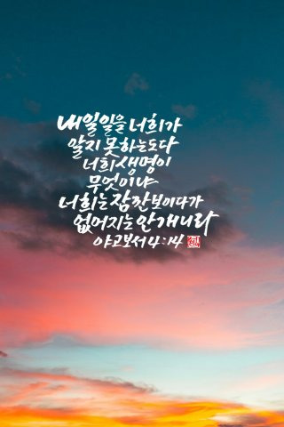 기도: 주님, 내일 일을 알지 못하는 연약한 인생, 예수님을 믿고 주님만을 위하여 살아가게 하옵소서. 예수님의 이름으로 기도 드렸습니다. 아멘.