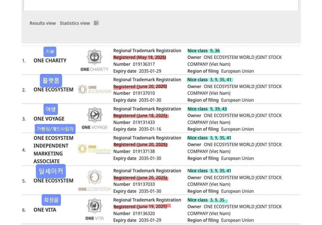1. 유럽연합 특허청에 등록한 원에코시스템