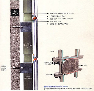 노튼tape과 구조용코킹은아래 사진을 참조하시면 될듯합니다. 웨더씰은 사진으로 본다면 줄눈용 실란트 부분이 되겠군요.