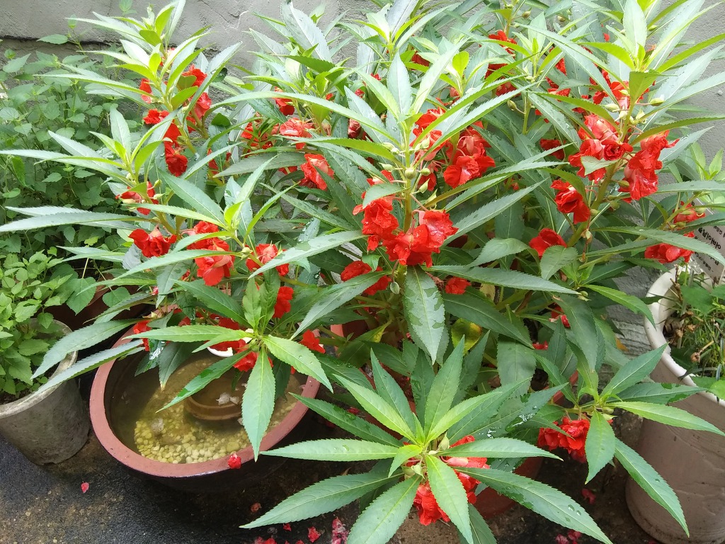 활짝 핀 봉숭아꽃을 카메라에 담으면서
