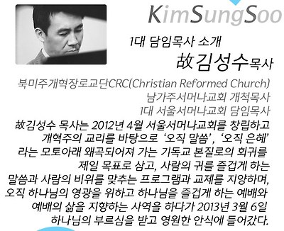 | ▲ 김성수 목사는 개혁주의에 입각한 성경 중심의 설교로 유명했다. 인터넷으로 김 목사의 설교를 접하고, 미국 여러 지역에 그의 영상으로 예배하는 교회가 생기기도 했다. 서울서머나교회는 김 목사 사후에 오히려 교인들이 더 많아지는 기현상을 경험하고 있다. (서울서머나교회 홈페이지 갈무리) | ||