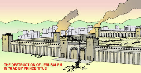 서기 70년, 다니엘 9:26~27에 예언된 대로 “한 왕의 백성이 와서 그 성읍과 성소를 훼파하는” 사건이 일어났다. 로마제국의 군대들에 의하여, 성전은 불타서 잿더미가 되었으며, 110만 명 이상의 유대인들이 포위된 채 예루살렘성 안에 갇혀서 참혹한 최후를 맞이하였다. “돌 하나도 돌 위에 남지 않고 다 무너뜨리우리라”(마 24:1~2)라는 예수님의 말씀뿐만 아니라, 다니엘서에 기록된 여러 예언들이 일시에 성취되었다.