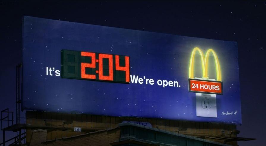 맥도날드는 24시간 운영한다는 것을 광고하기 위해