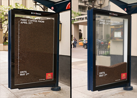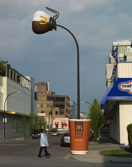 캐나다 밴쿠버 시내에 세워진 거대한 공짜커피 제공에 관한 광고물입니다.
