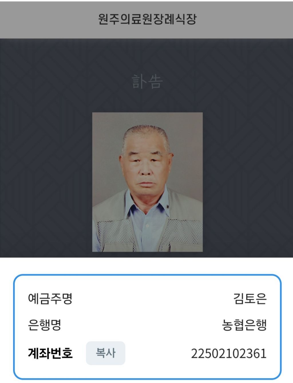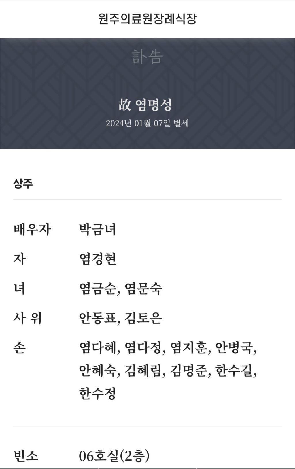 김토은회원 장인께서 6일 지병으로 별세하셨습니다 삼가 조의를 표하며 고인의 명복을 빕니다