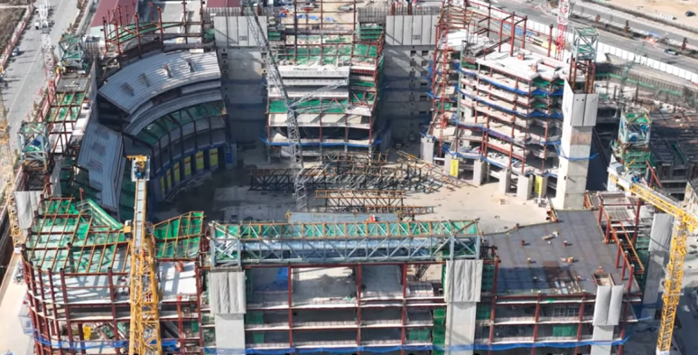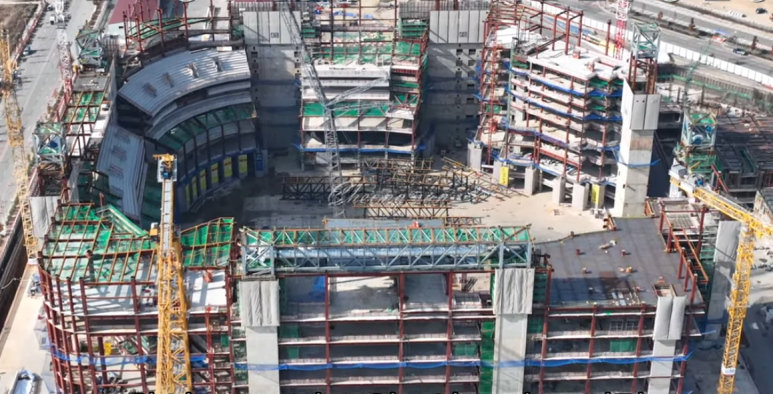 안녕하십니까.11월 09일자 청라 스타필드 돔 야구장 포스팅입니다.현재 소폭의 철골 조립이 이루어진 가운데 각 구역의 데크 플레이트 설치와 콘크리트 타설이 함께 이루어지고 있습니다.청라 스타필드 영업점 또한 지상부 철골 설치 작업이 한창 진행 중에 있습니다.영업점은 공정 속도가 빠르게 느껴지네요.오늘 현장 사진에서는 적재소에 지붕을 떠받드는 철골 프레임이 타워 크레인에 들어 올려지기 직전인 사진을 보실 수가 있습니다.다음 포스팅 사진에서는 각 8구역의 최상층 철골 프레임이 설치가 되어지는 공정 사진을 보실 수가 있을 듯 싶습니다.