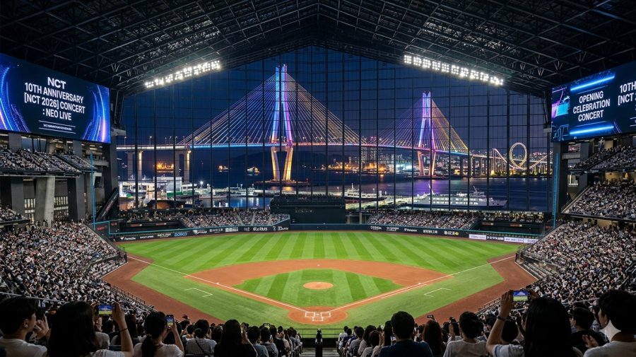 첫 합성사진 에스콘 필드 포토샵 했네요 실제로 지어진다면 돔으로 짓더라도 외부 바다와 다리가 보이게 외야쪽은 통창으로 설계하면 좋겠네요