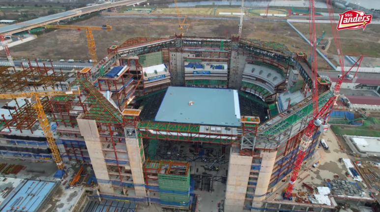 지붕이 들어 올려져 설치 완료가 되어지면 본격적으로 내부 스탠드 골조 공사가 시작될 듯 싶습니다.지붕이 들어 올려지는 8각 모서리 자리에 스탠드 관중석이 끊어져 있는데 연결 작업도 시작이 되구요.전 포스팅 때도 말했지만 지붕이 올려지면 드론이 내부 모습을 찍을 수 없기 때문에 앞으로의 포스팅을 올리는 작업은 어떻게 해야될지 정말 걱정이 드네요.각 상황에 맞게 그리고 유도리 있게 그때 그때 주제거리를 찾아야 할 듯 싶습니다.앞으로의 포스트 방식의 작은 변화에 회원님들이 이해해주셨으면 합니다.오늘 이야기는 여기서 끝 마치려 합니다.앞으로의 포스팅은 지붕의 골조 조립과 외장판넬 부착의 공정에 집중하도록 하겠습니다.어느덧 4월 중순으로 접어들어 날씨가 제법 따뜻해 졌습니다.회원님들도 짧디 짧은 봄 날씨를 잘 느끼시며 항상 건강하시길 빌겠습니다.이상 4월 12일 청라 스타필드 돔 야구장 포스팅이였습니다.