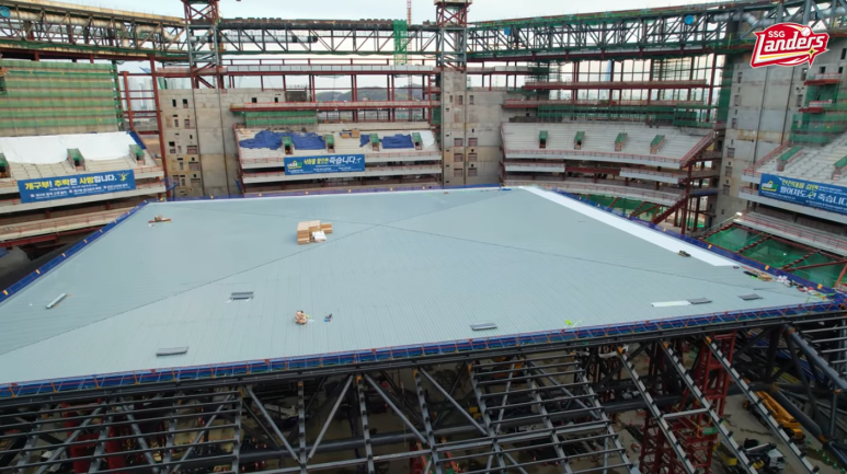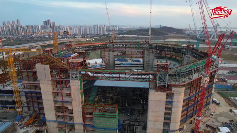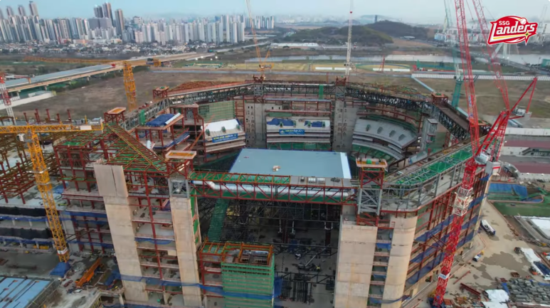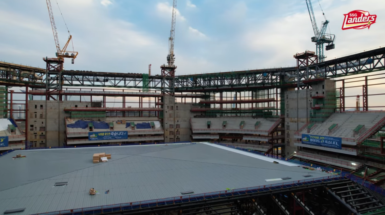안녕하십니까.4월 12일 청라 스타필드 돔 야구장 포스팅입니다.자 회원님들도 사진을 보시는거와 같이 현재 지붕 상부에 외장판넬을 부착하고 있습니다.8일 전에 판넬 부착을 막 시작하는 단계였는데 현재는 상부 구조물에 모두 부착한 모습을 보이고있습니다.지붕 트러스의 철골 조립은 현재 한 면만 남은 상태로 분주히 조립에 임하고있습니다.한 1~2달의 시간 경과 후 지붕 골격 조립과 외장판넬 부착 작업은 어느정도 끝마치지 않을까 생각이 듭니다.지붕이 들어 올려져 스탠드 맨 상부에 얹혀지게 된다면 저 개인적으로 감개무량하지 않을까 지금부터 흥분 되기 시작합니다.다음 포스팅 때에는 지붕의 트러스 부위에 외장 판넬 작업이 진행 중이지 않을까 생각이 듭니다.어서 빨리 지붕 전체에 덮혀진 모습을 보고 싶습니다.