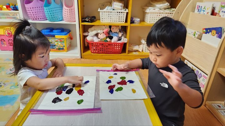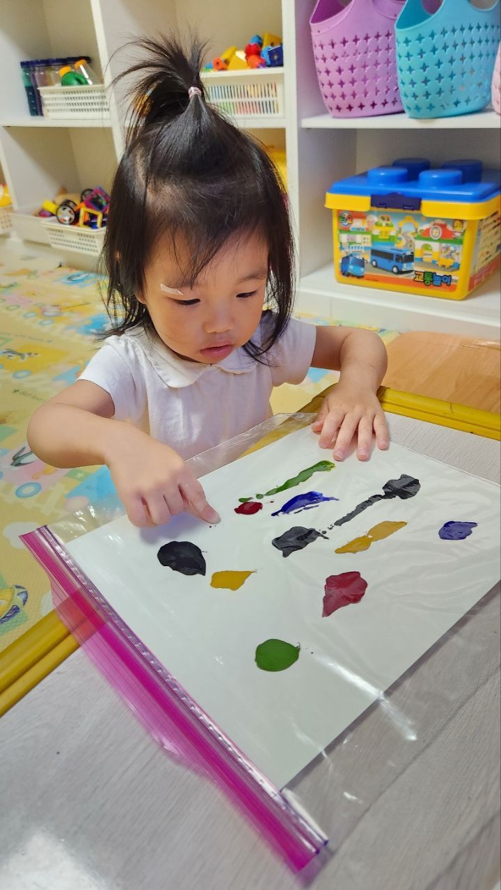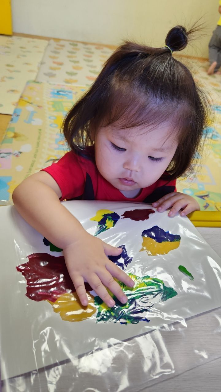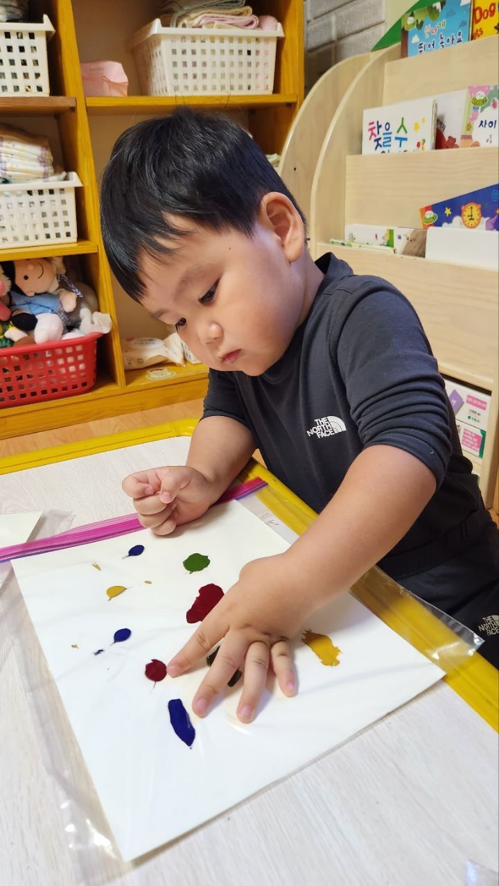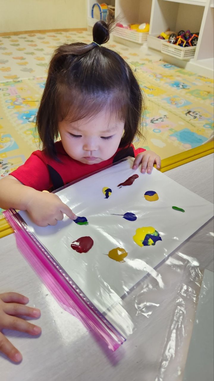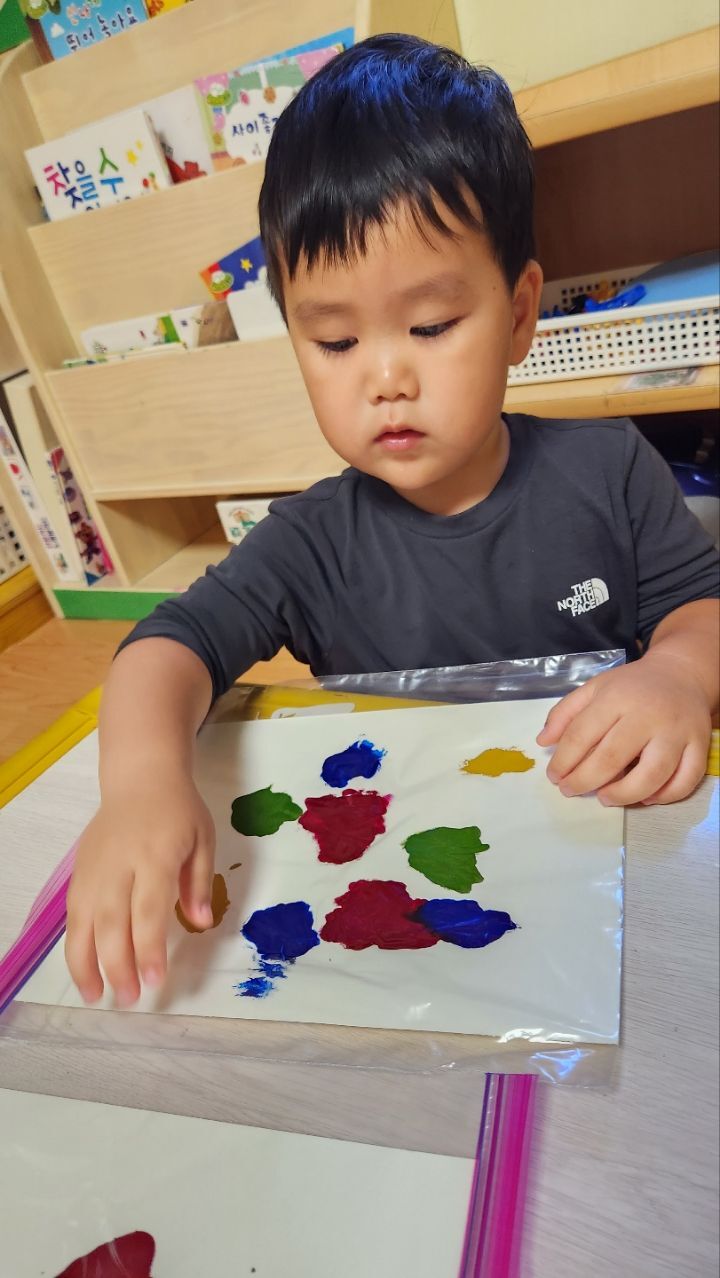 미끌미끌~물감놀이 신기해요~♡ 작성자별뜰지기|작성시간22.09.21|조회수18 목록 댓글 1 글자크기 작게가 글자크기 크게가 다음검색 현재 게시글 추가 기능 열기 북마크 공유하기 신고 센터로 신고 댓글 댓글 1 댓글쓰기 답글쓰기 댓글 리스트 작성자모모와모모 | 작성시간 22.09.21 지퍼백 속에 물감을 넣어 관찰하고 탐색하며 손가락으로 꾹꾹 눌러보고 물감이 번지는 모습을 관찰하며 놀이해 보았어요. 우리 친구들 지퍼백에 물감이 들어있는것에 신기해 하기도하고 관심갖고 즐겁게 놀이하는 모습을 보였네요~ 재미가 있는지 내것만하는게 아니라 옆에 친구것도 꾹꾹 눌러주며 좋아하는 우리 친구들이였네요~ 댓글 전체보기