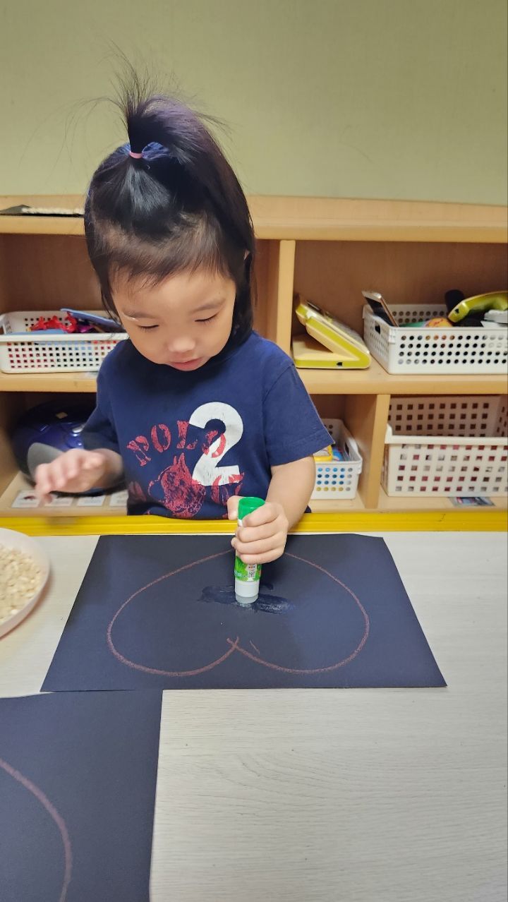 검은~도화지에 쌀 튀밥을..!! 작성자별뜰지기|작성시간22.09.28|조회수29 목록 댓글 1 글자크기 작게가 글자크기 크게가 다음검색 현재 게시글 추가 기능 열기 북마크 공유하기 신고 센터로 신고 댓글 댓글 1 댓글쓰기 답글쓰기 댓글 리스트 작성자모모와모모 | 작성시간 22.09.28 오늘 검은도화지 위에 딱풀로 하트그림도 그려보고 바삭바삭하고 달콤한 쌀뻥튀기로 하트그림속을 채워 붙여보았어요~ 하트그림에 붙이는데 우리친구들 먹는걸 뿌리치지못하고 한알한알 먹는 모습을 보여 조금씩 맛을 볼수 있도록 해주니 좋아하는 모습을 하며 맛있게 먹어보기도 하였네요~ 댓글 전체보기