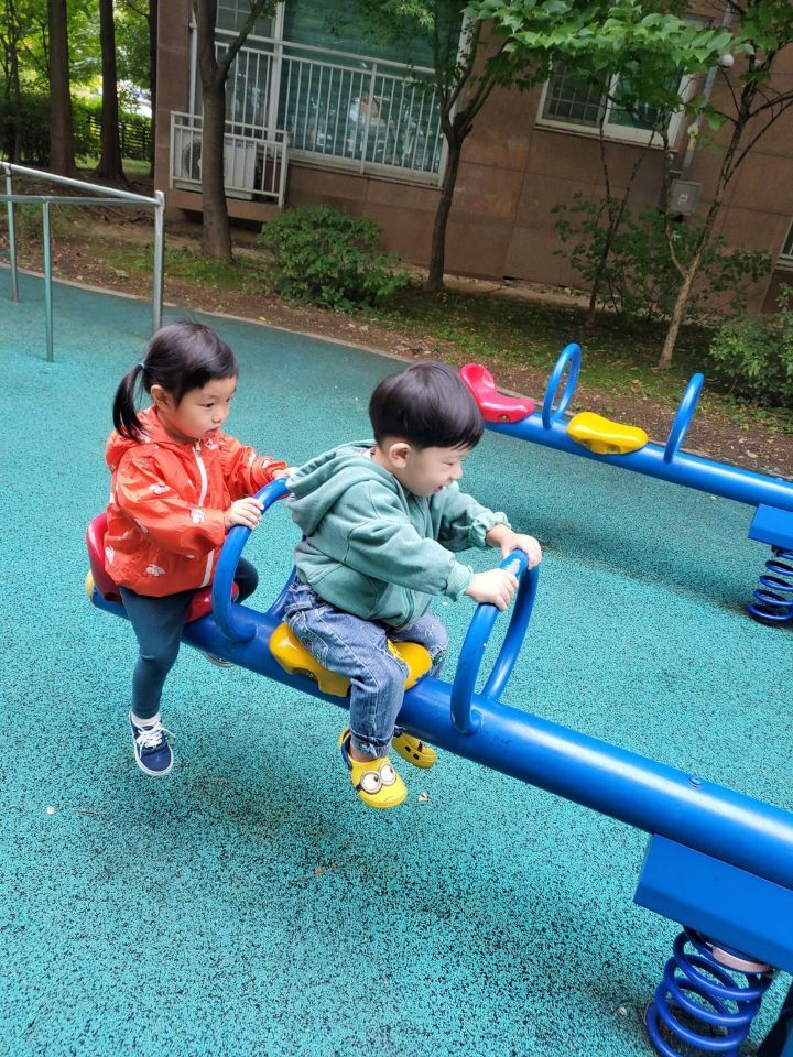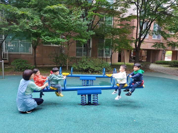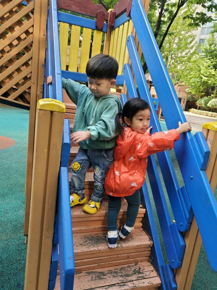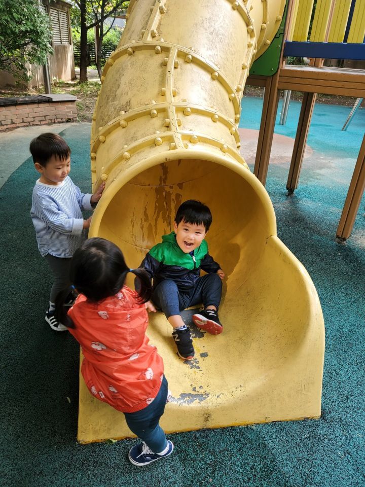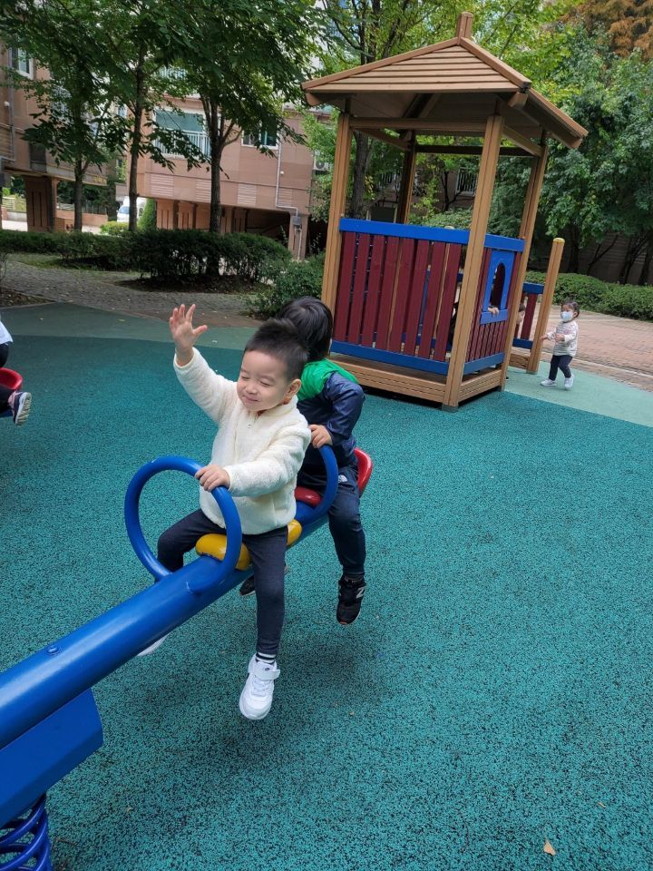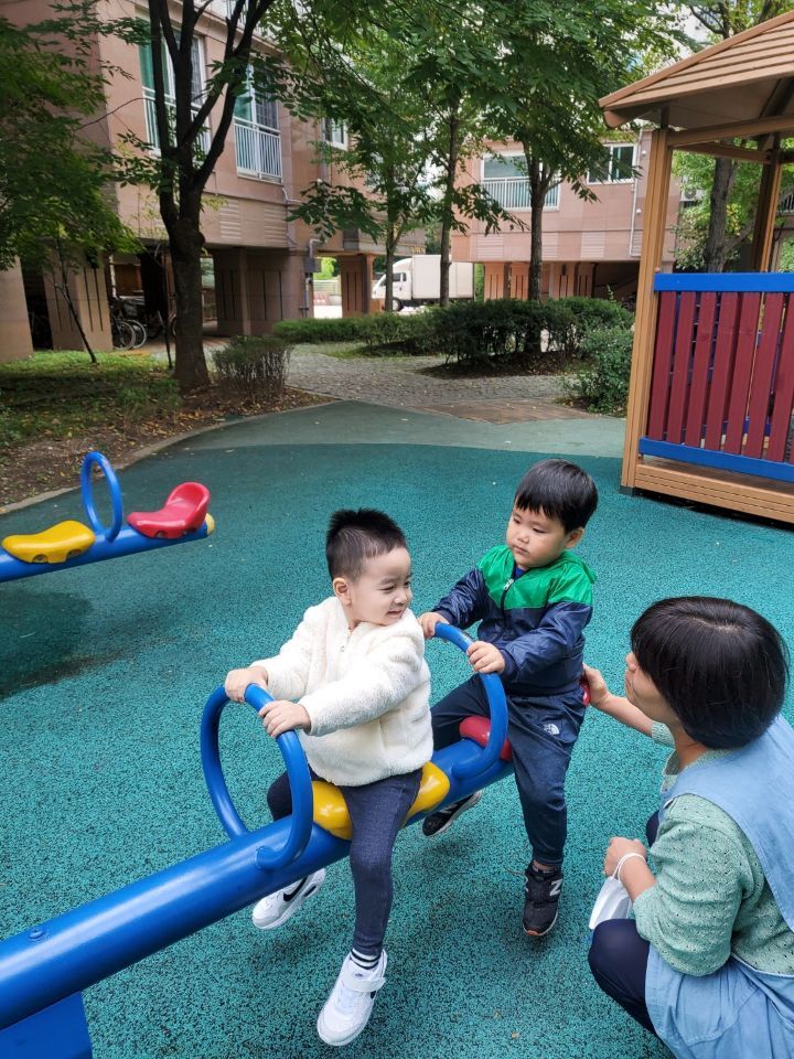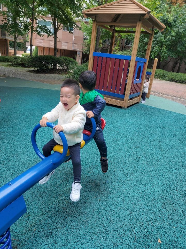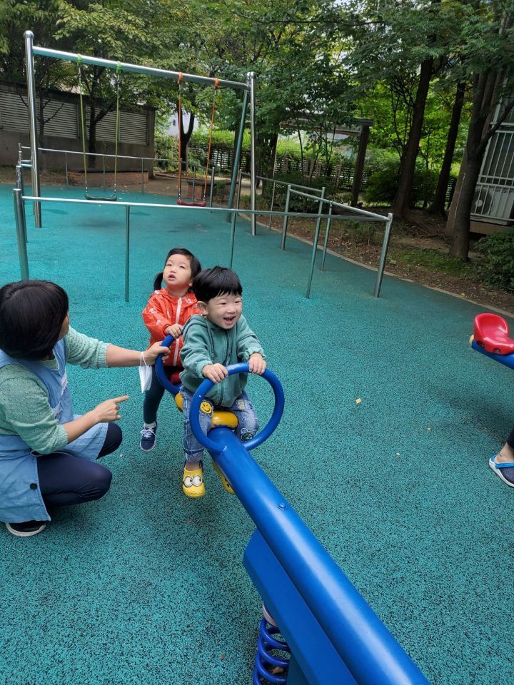 근처 놀이터에 다녀 왔어요~우리 친구들 놀이터를 보고 감탄하며 신나게 여기저기 뛰어다니기도하고 놀이기구 를 타며 놀았어요~ 놀이가구 탈때마다 깔깔거리며 웃기도하고 너무 신이나는지 함박웃음 표정 지으며 '아~!!'하고 소리 지르며 놀이하는 우리 친구들이였네요~한참 놀이하다 시간이 되어 원에 돌아오는데 엄청 아쉬워 계속 놀고싶어 하는 우리 친구들과 다음을 기약하며 원에 무사히 돌아와 맛있게 점심먹었답니다~