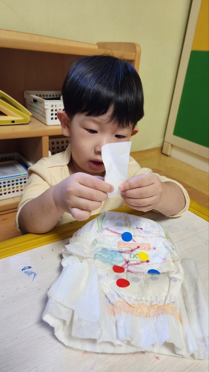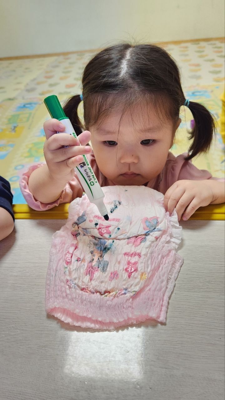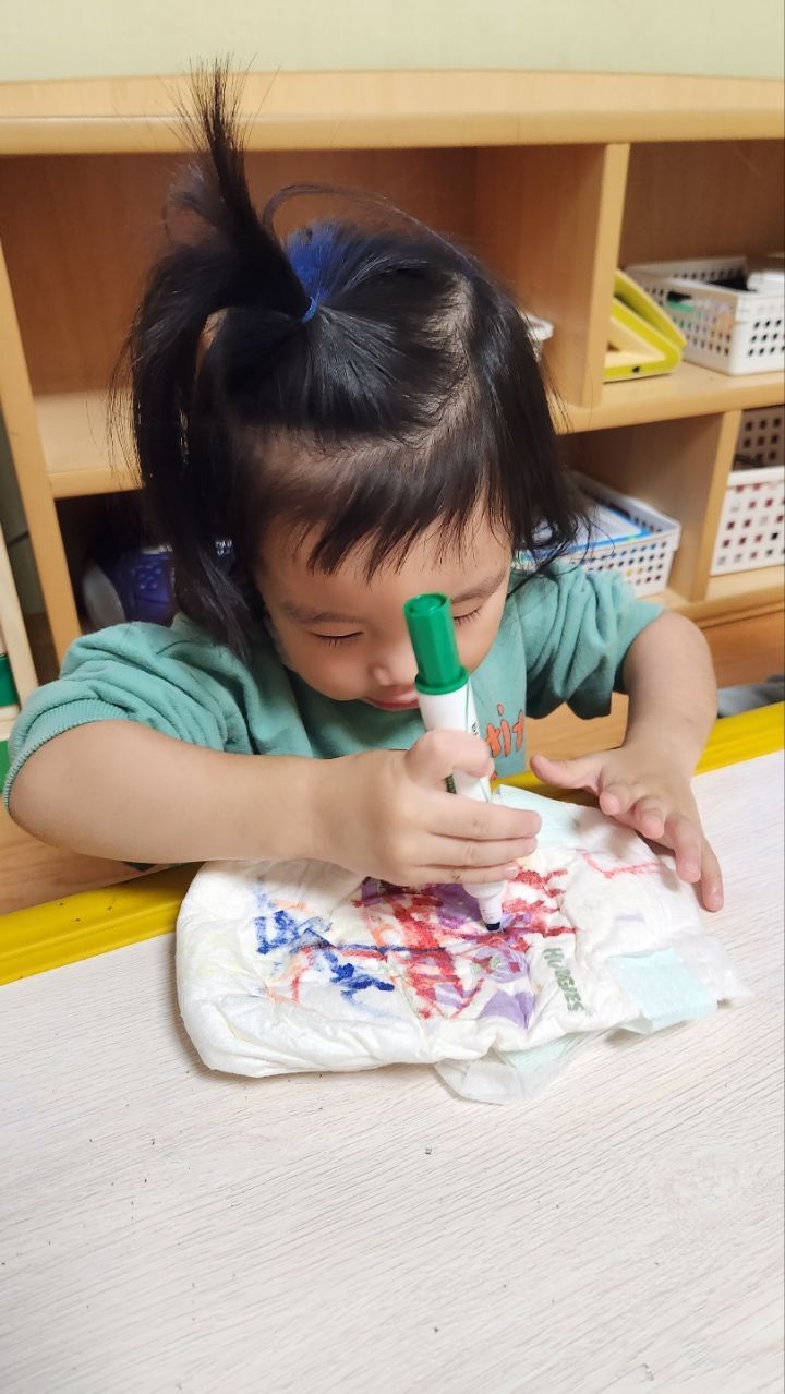 기저귀에~끼적이기하고 기저귀 안녕해주자♡ 작성자별뜰지기|작성시간22.10.18|조회수20 목록 댓글 1 글자크기 작게가 글자크기 크게가 다음검색 현재 게시글 추가 기능 열기 북마크 공유하기 신고 센터로 신고 댓글 댓글 1 댓글쓰기 답글쓰기 댓글 리스트 작성자모모와모모 | 작성시간 22.10.18 항상 차고있던 기저귀를 어떻게 생겼는지 관찰하고 탐색해보고 끼적이기하며 놀이해보았어요~기저귀에 끼적이기하는게 즐거웠는지 신나게 끼적이기하는 우리 친구들이였네요~ 흥미있어하는 모습을 보고 기저귀에 스티커를 붙이도록해주었더니 적극적으로 붙이며 자리를 떠나지 않는 우리 한아름반이였어요~~ 댓글 전체보기
