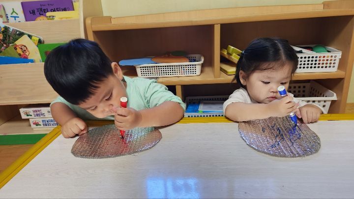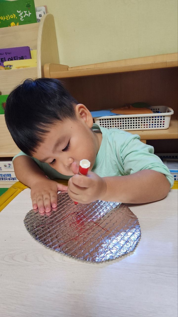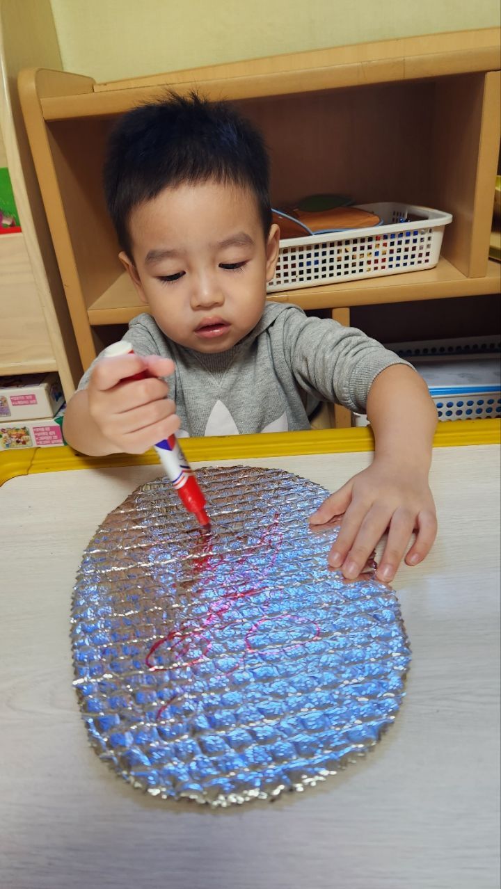 반짝반짝~~ 얼굴가면~!! 작성자별뜰지기|작성시간22.10.21|조회수21 목록 댓글 1 글자크기 작게가 글자크기 크게가 다음검색 현재 게시글 추가 기능 열기 북마크 공유하기 신고 센터로 신고 댓글 댓글 1 댓글쓰기 답글쓰기 댓글 리스트 작성자모모와모모 | 작성시간 22.10.21 은색 뽁뽁이위에 매직으로 자유롭게 끼적이기하며 놀이해 보았어요~우리친구들 색다른 뽁뽁이에 끼적이기하니 신기해하며 즐거워하는 모습을하며 노는 모습을 보였답니다. 꾸미기를 한후 눈과 입을 오려 가면놀이를 해주었더니 좋아서 어쩔줄 몰라하며 서로서로 친구에게 '까꿍~'하고 놀이도하고 '어흥~'하며 호랑이 소리내어가며 신나게 놀이하는 우리 한아름반 친구들이였네요~즐거운주말 보내세요~~^^ 댓글 전체보기