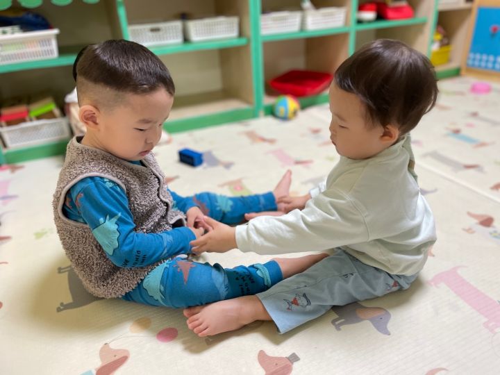 친구랑~손과 발 부딪혀봐요~!! 작성자별뜰지기|작성시간23.01.02|조회수24 목록 댓글 1 글자크기 작게가 글자크기 크게가 다음검색 현재 게시글 추가 기능 열기 북마크 공유하기 신고 센터로 신고 댓글 댓글 1 댓글쓰기 답글쓰기 댓글 리스트 작성자노수희 | 작성시간 23.01.02 친구와 내 손과 발로 짝짝~~소리 내어보았어요. 친구가 좋은지 쪽쪽~소리를 내며 뽀뽀해주는 친구도 있었어요. 눈과 손의 협응력을 가져보는 놀이를 하였답니다. 2023년 복 많이 받으세요!🎉 댓글 전체보기