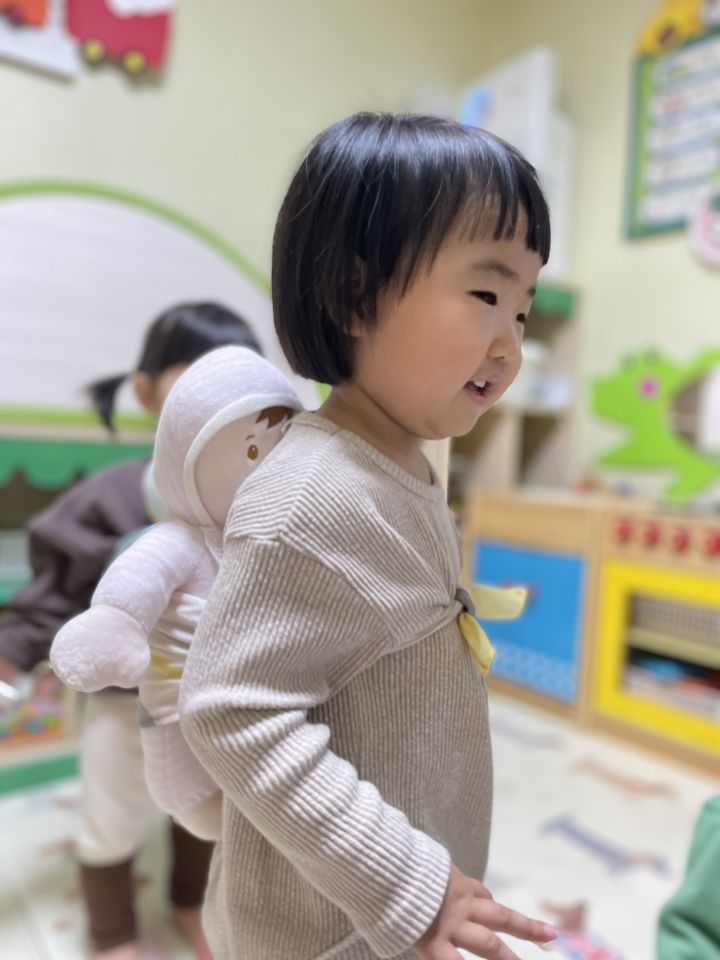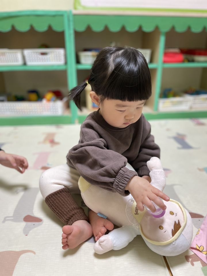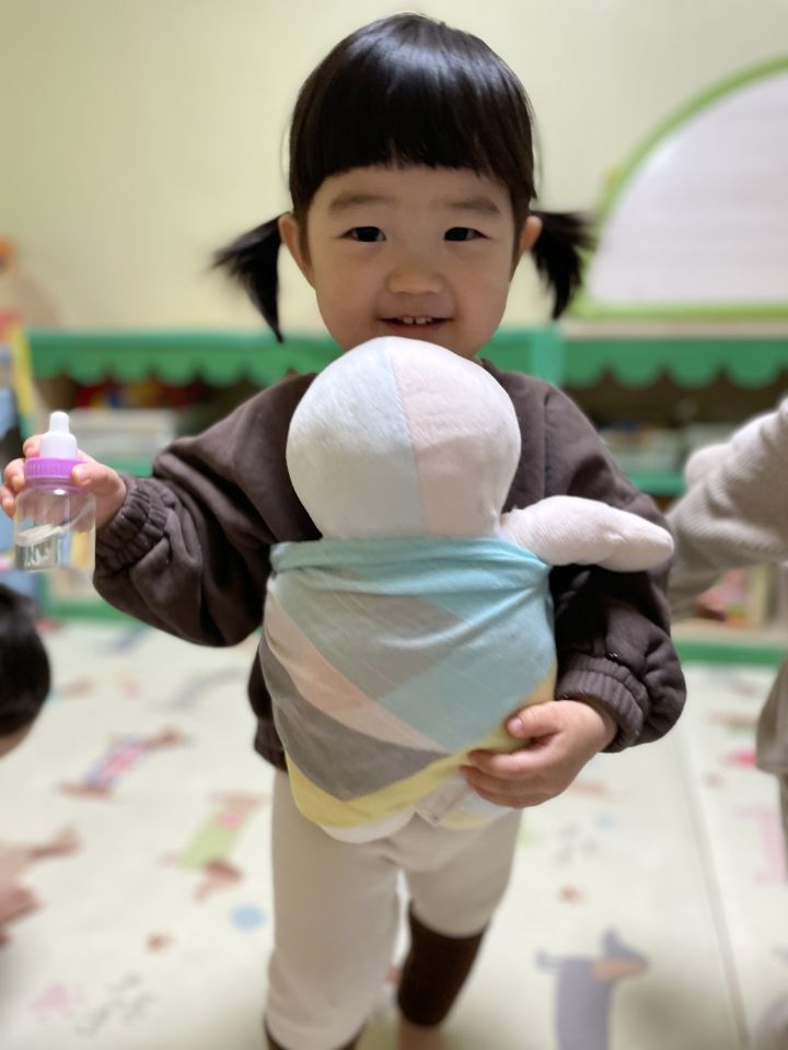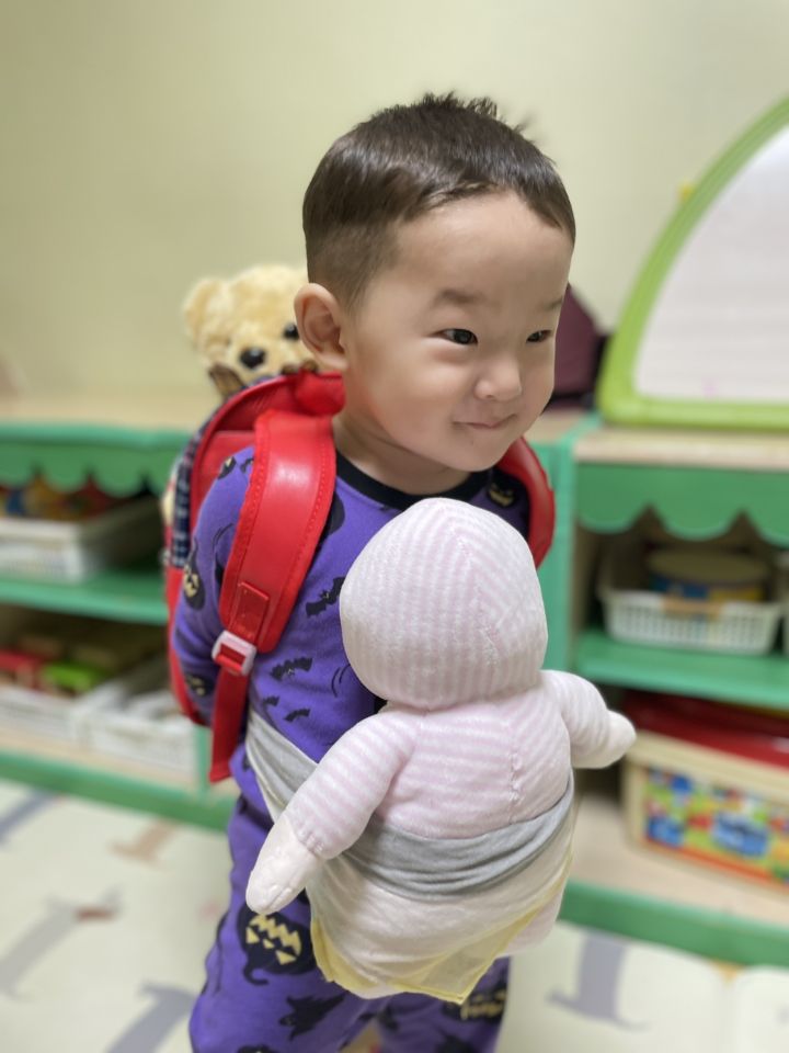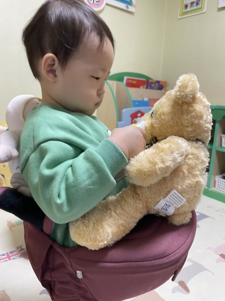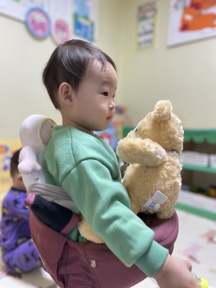 작성자노수희 작성시간 23.01.18 사랑스런 우리 친구들이 이제는 아가인형을 안고 사랑스런 모습으로 우유을 먹여보기도 하고 아가띠를 하고 어부바를 해 주었어요. 평소에 가방을 메고 싶어하는 친구들이 있어서 가방 안에 곰 인형을 넣어주니 기분이 좋은지 이리저리 걸어다니는 모습을 보였어요.🧸