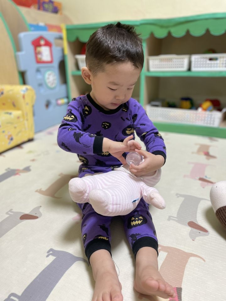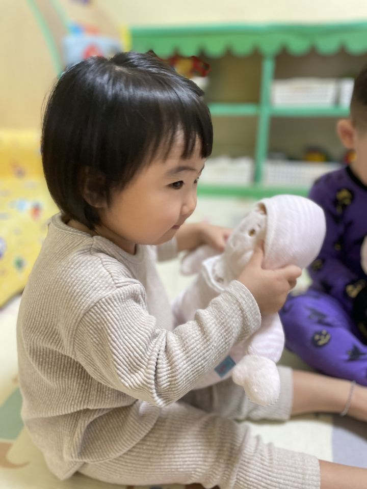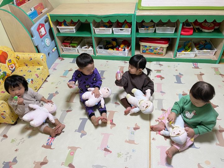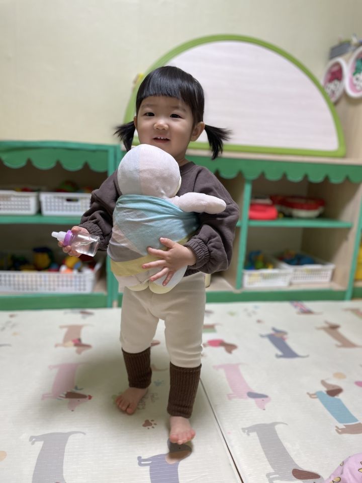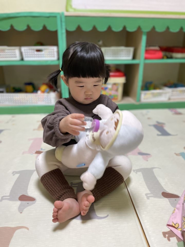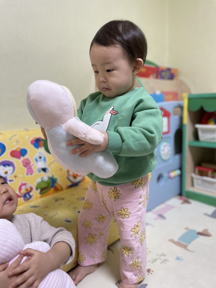 작성자노수희 작성시간 23.01.18 사랑스런 우리 친구들이 이제는 아가인형을 안고 사랑스런 모습으로 우유을 먹여보기도 하고 아가띠를 하고 어부바를 해 주었어요. 평소에 가방을 메고 싶어하는 친구들이 있어서 가방 안에 곰 인형을 넣어주니 기분이 좋은지 이리저리 걸어다니는 모습을 보였어요.🧸