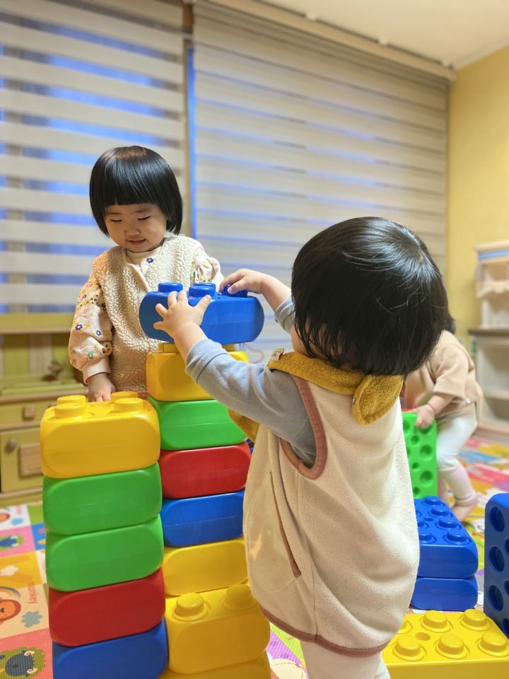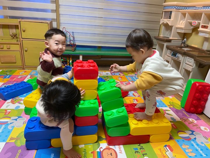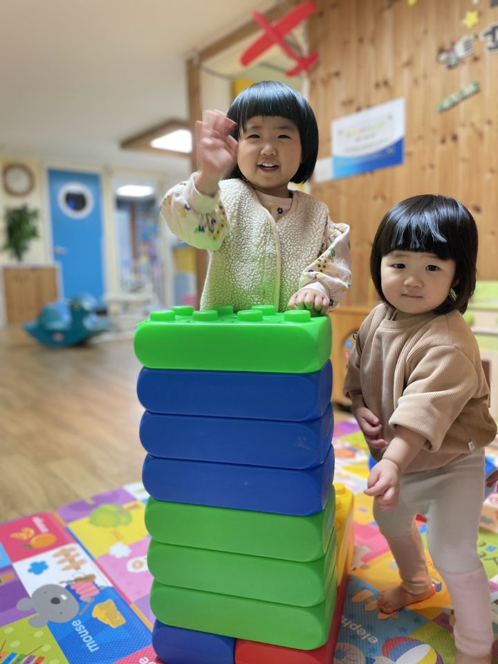 즐거운 연휴 보내셨나요? 우리 귀요미 친구들에게 맛있은 음식 먹고 왔는지 물으니 딸기와 고기라고 답을 하고 할머니, 할아버지에게 인사 잘 했는지 물으니 엄마처럼 한쪽다리는 내리고 절을 해요. 또 무엇을 타고 다녀왔는지 물으니 붕붕이를 탔다고 하여 큰 블럭으로 자동차를 만들어 놀이를 하였어요. 🚘🚐🚌