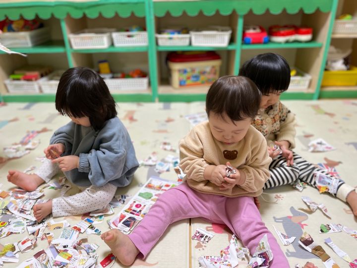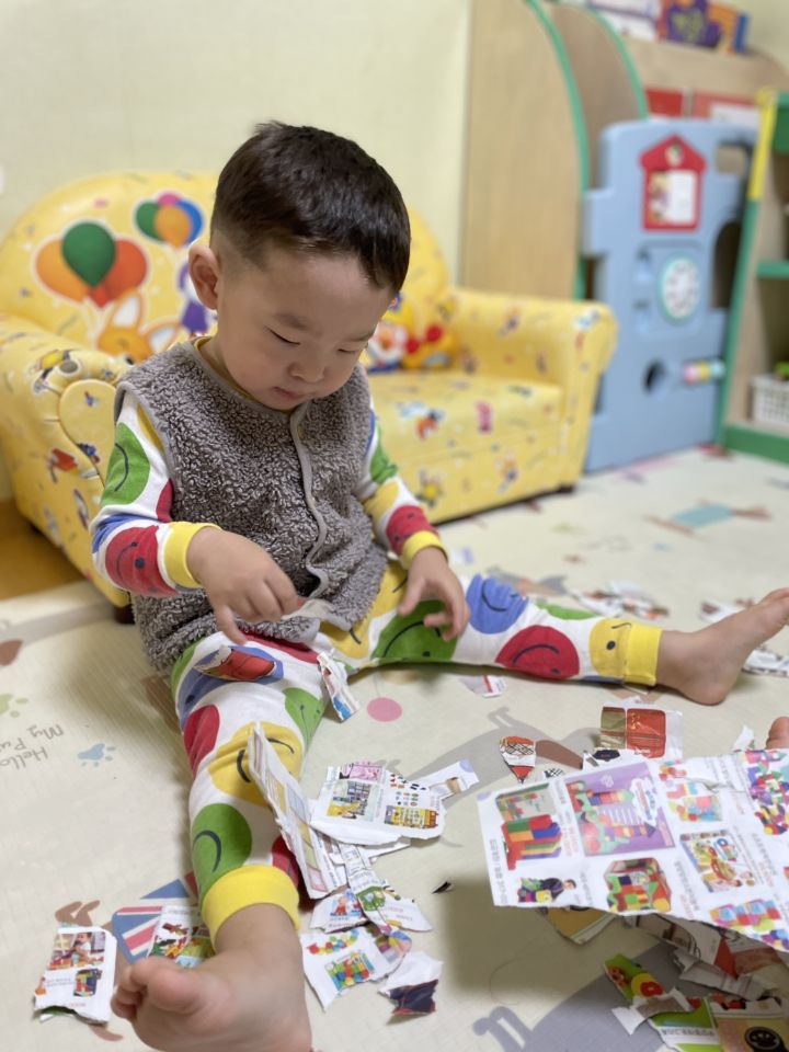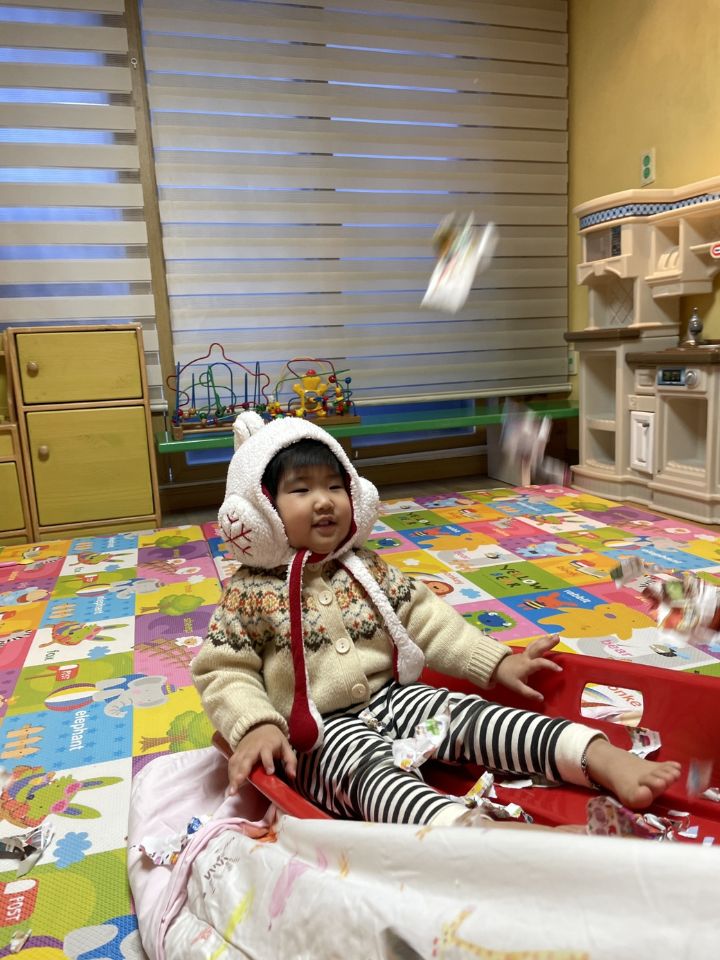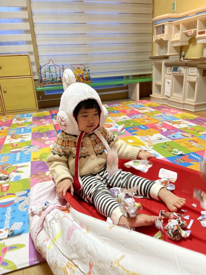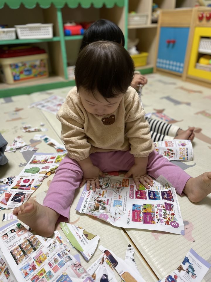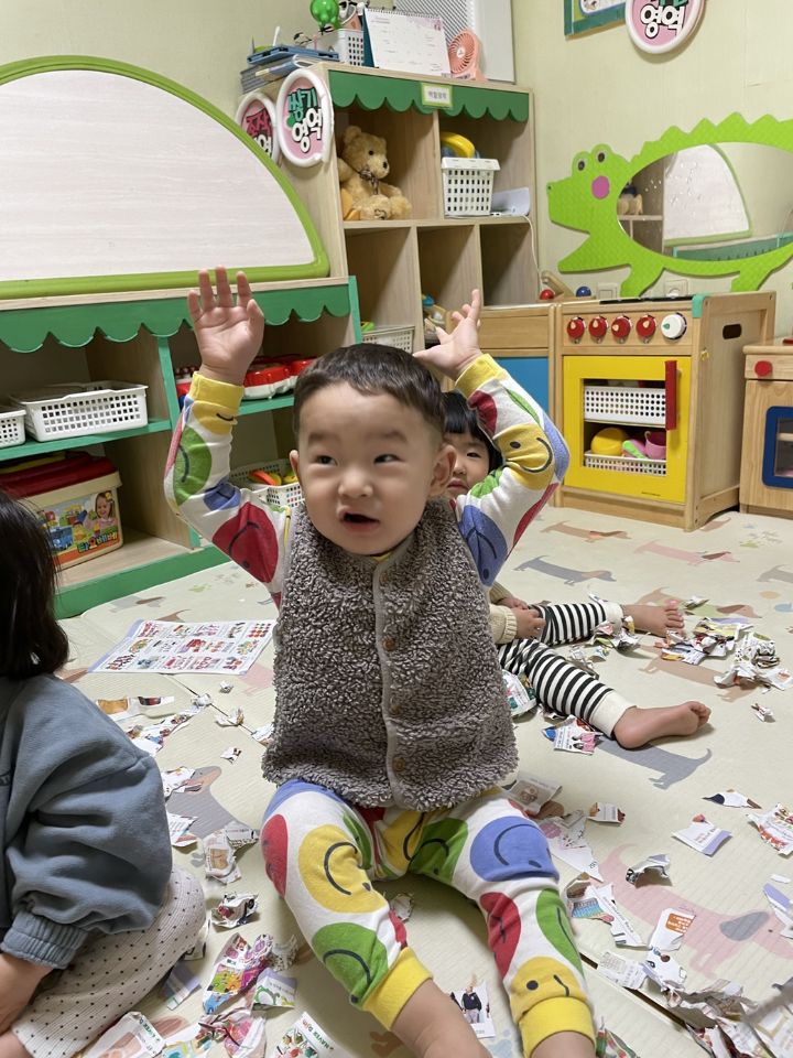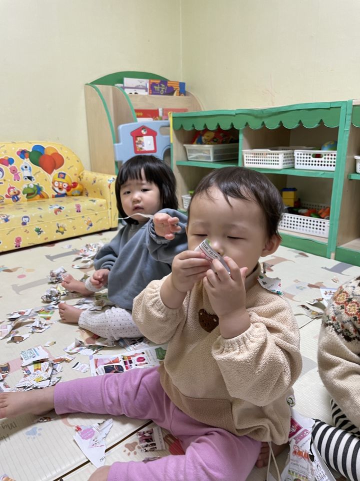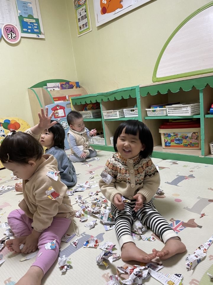 종이를 찢어 눈을 만들어보자고하니 인쇄된 사진을 보고 “이건 뭐야?“ 물어보는 친구들이 많아졌어요. 우리 귀요미들이 많이 성장했다는 생각을 들게 했어요. 눈 썰매를 더 타고 싶은 친구들이 많아서 여러번 태워주어도 내리지 않아서… 선생님이 타서 밀어달라고 하니 우리 친구들이 잠깐 힘을 주다가 ”안돼~“ 하더니 다른 곳으로 갔답니다. ❄️⛄️