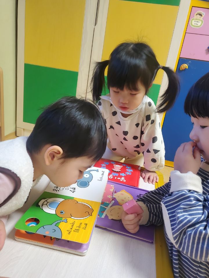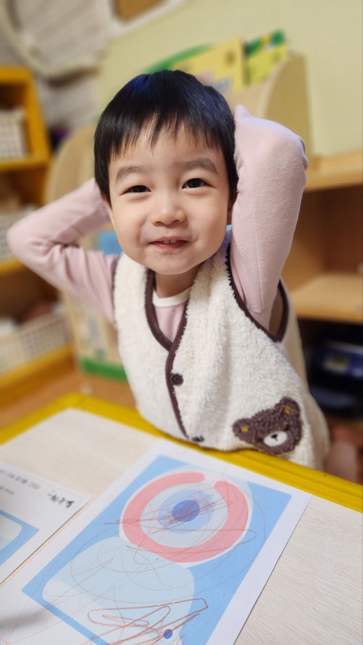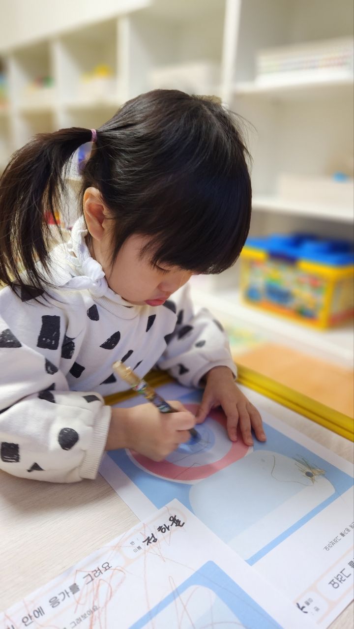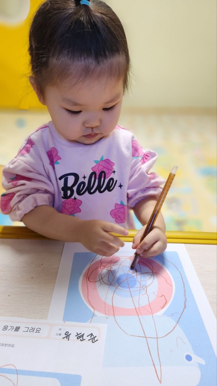 오늘 응가 변기 책도 읽어보고 변기 그림위에 나의 응가를 그려보았어요~아직은 그림이 서툴지만 나름 열심히 그려보는 우리 친구들이였네요~그림을 그리며 '응가야~잘가~다음에 보자~'하고 말해주며 그리는 친구도 있고 그모습을 보고 '나도 인사할래~'하고 손을 흔들어주며 열심히 응가를 그려보는 모습을 보이기도 하구요~우리 친구들 아직 변기나 쉬통에 쉬하는걸 거부하지만 다음엔 쉬를 용기내어 할수있도록 응원해 봅니다~~^^