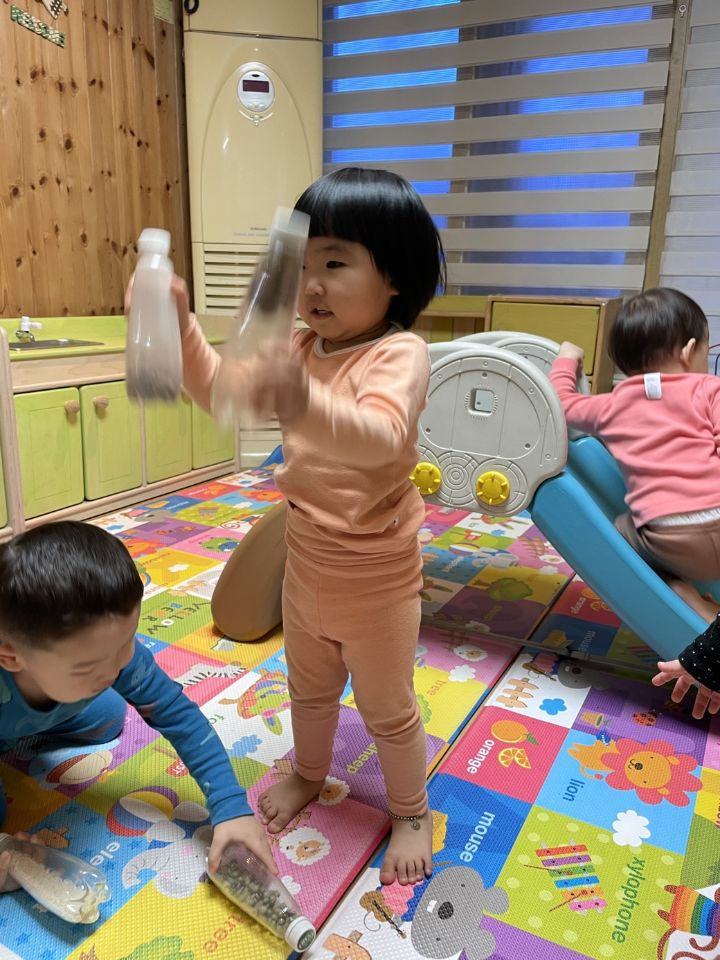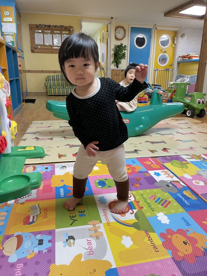 신나는 음악을 들려주니 엉덩이를 흔들흔들~~ 친구의 얼굴을 마주보며 서로 웃고 뱅글뱅글 돌며 즐거운 월요일을 시작했어요. 🎵🎵 -