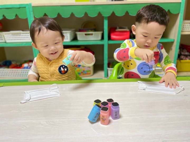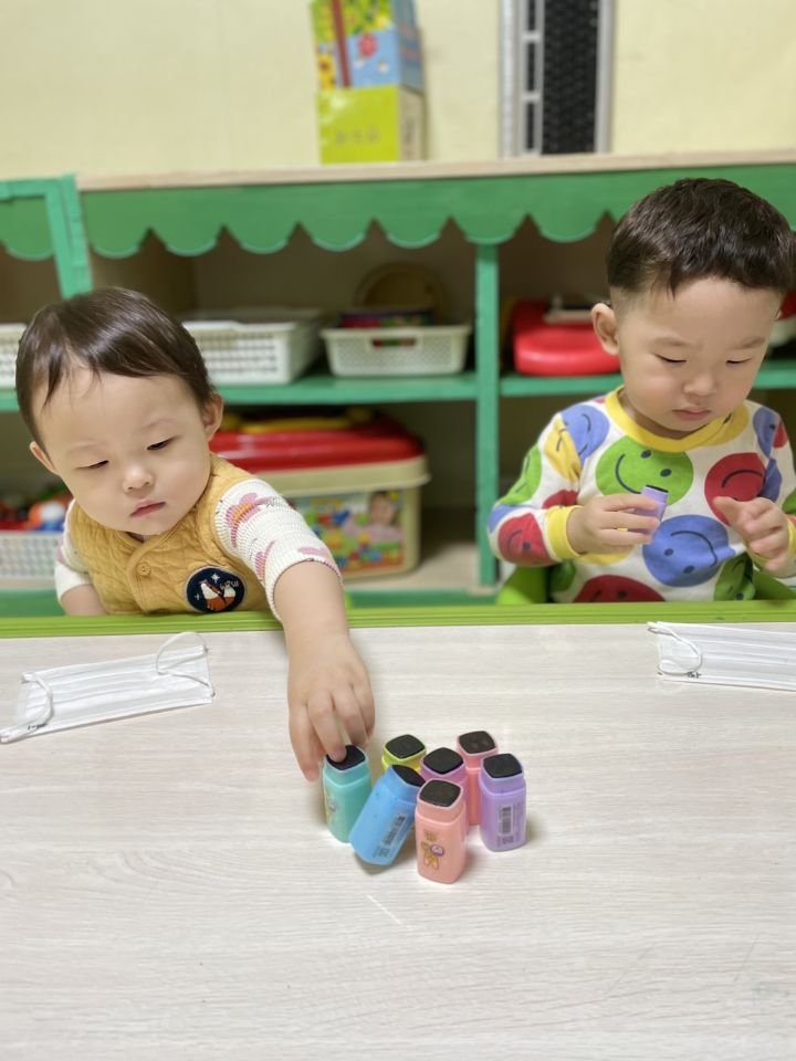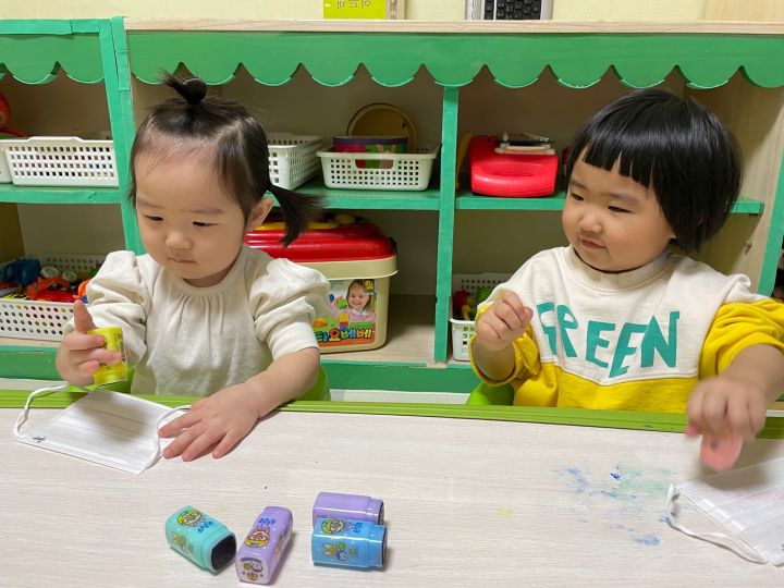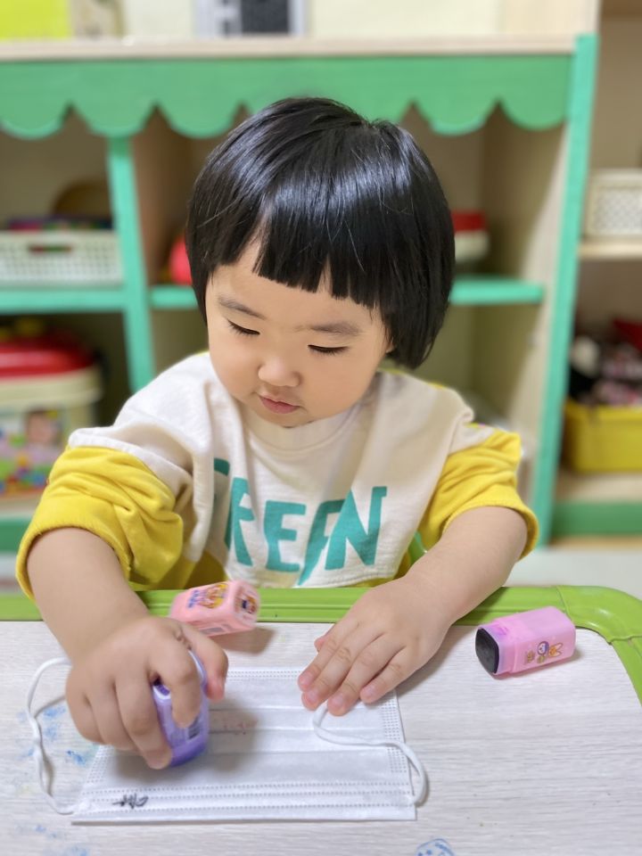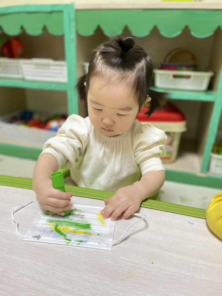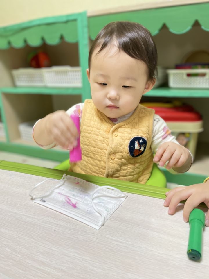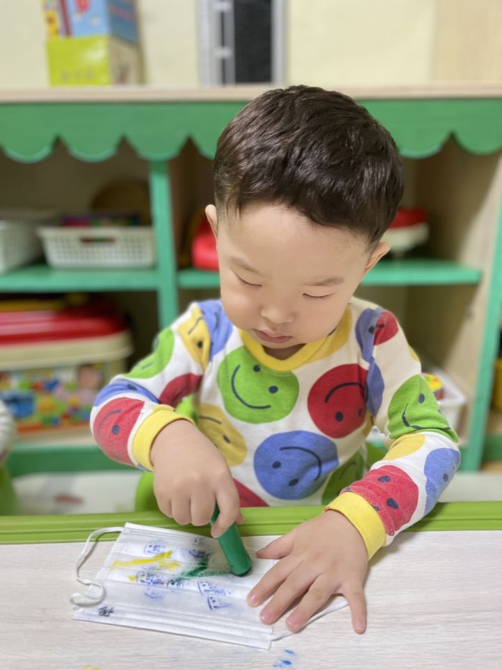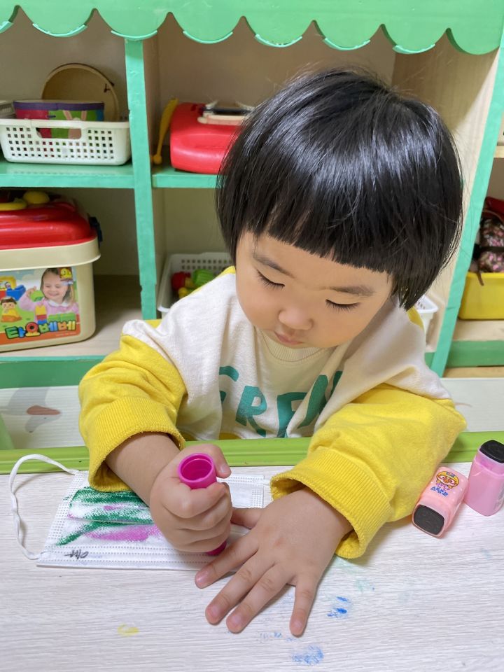 마스크를 탐색해보고 그 위에 도장으로 꾹꾹~ 눌러서 찍어도보고 파스넷으로 끼적이기를 하며 즐겁게 놀이를 했어요. 자신이 만든 내 마스크를 쓰고 활짝 웃기도 했답니다. 😷 미세먼지와 코로나로 인해 마스크와 친해져야하는 현실이 답답합니다. 우리 이나는 공기좋은 제주도에서 마음껏 놀고 3월에 만나요! 🗿🏝️